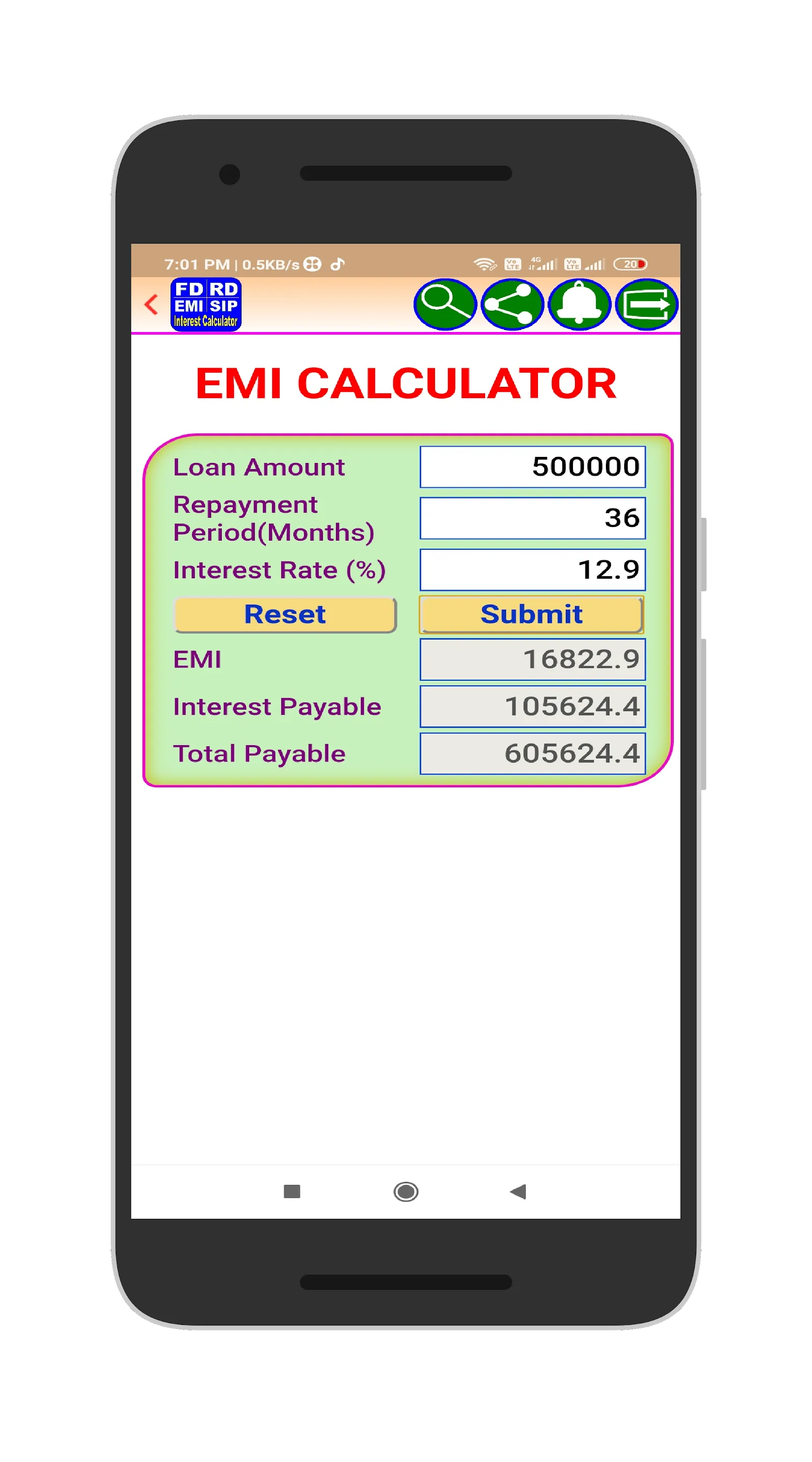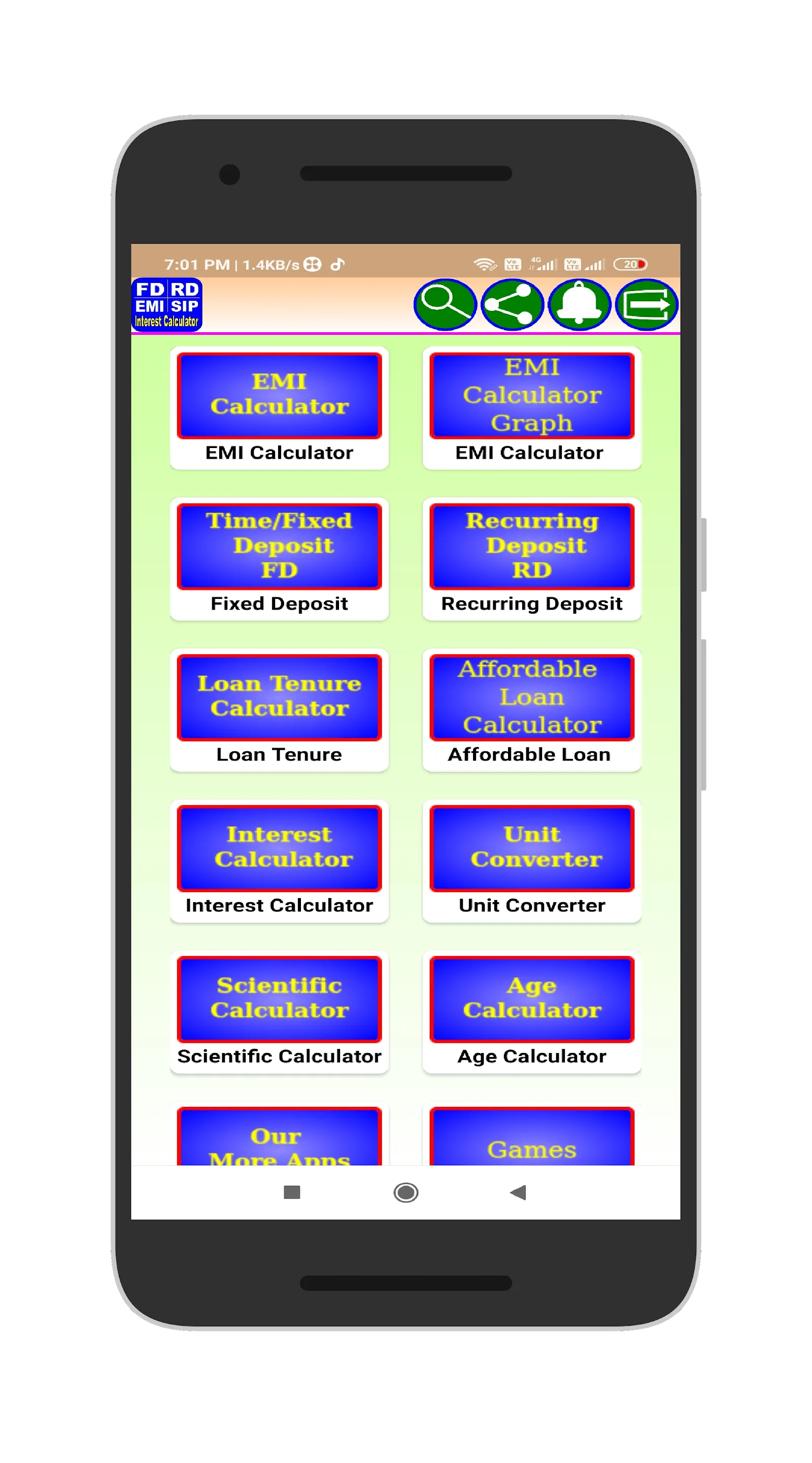 Financial Calculator - EMI FD RD SIP INTEREST Do All calculators in one App of your daily life needs.This App contains below All calculators: Loan EMI Calculator ...