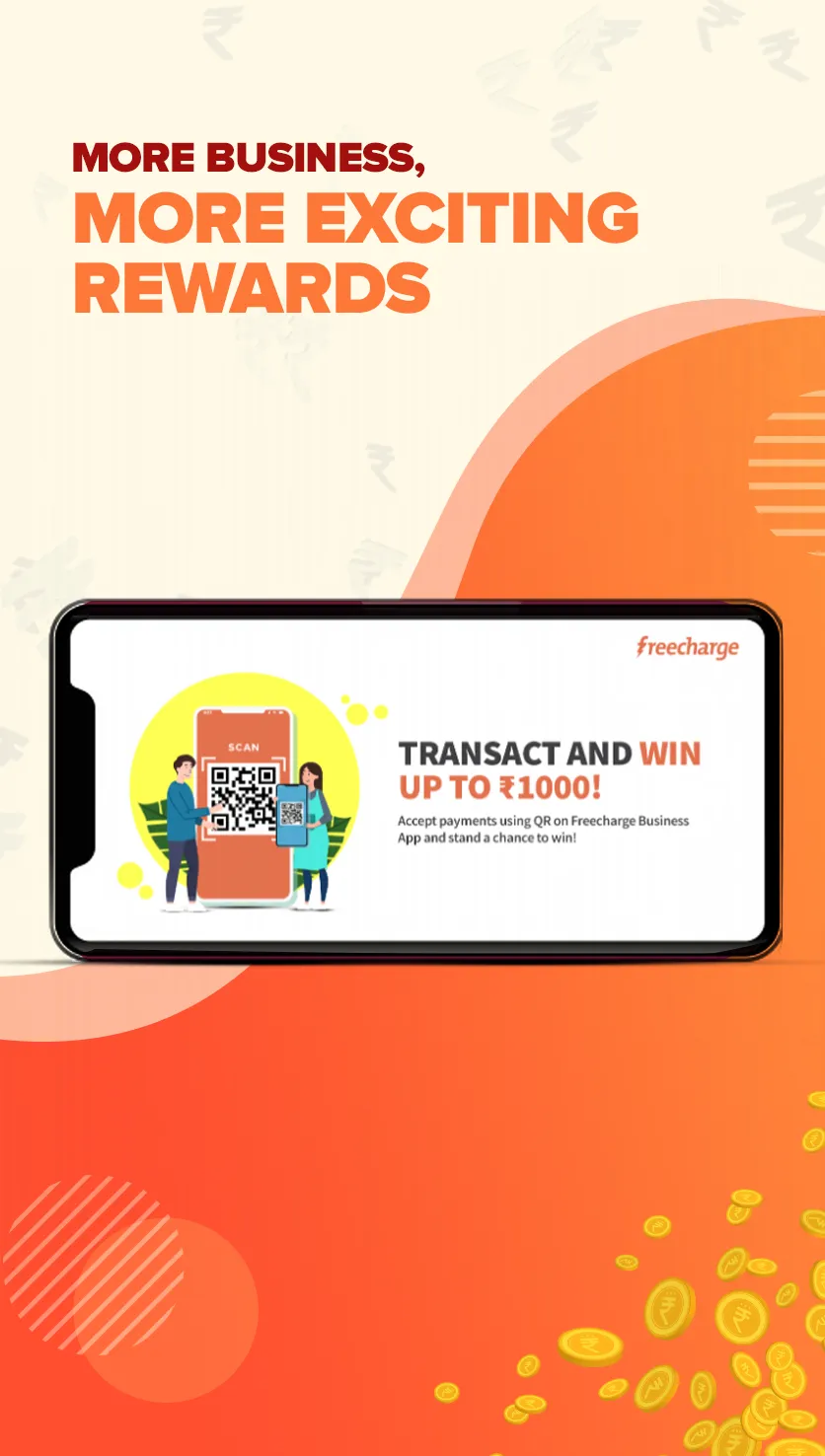 About Freecharge Business App * Over 5,00,000 businesses trust Freecharge for their payments. * The Freecharge Business app is the fastest and easiest way to collect payments from customers for merchants, small businesses, startups, freelancers, shops, or delivery services. * Seamlessly accept payments through UPI apps and RuPay Credit Cards. * Use the Freecharge All-In-One QR Code to accept payments from UPI Apps and Rupay Cards. Print or order the QR code and display it prominently in your shop....