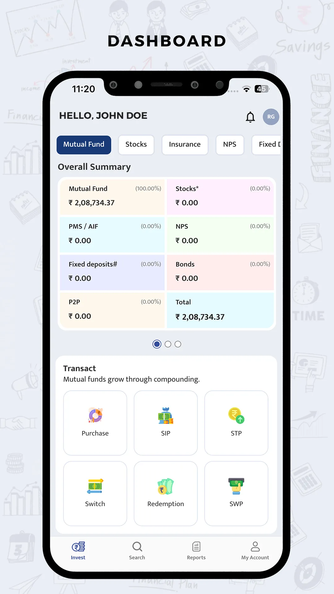 Welcome to the new world of Mobile E-nvesting! You don’t have to chase investments because investments will chase you now wherever you go! Because, we have made your ‘Investments’ mobile! FundzBazar has launched its new Mobile App which is easy to use and easy to navigate offering great flexibility in investing. With features ranging from basic to advanced, it gives the investors total control of their investments. FundzBazar App provides the investor with a unique feature called ‘Dashboard’ which provides a snapshot of investments made by the investor including the inflows/outflows of the past month at a single point. It also provides updates regarding Pending Transactions, Upcoming SIPs, STPs and SWPs. ...