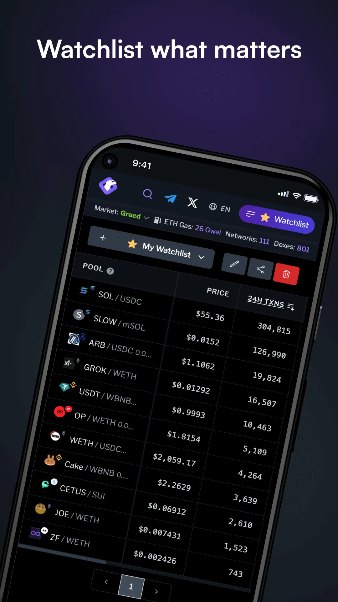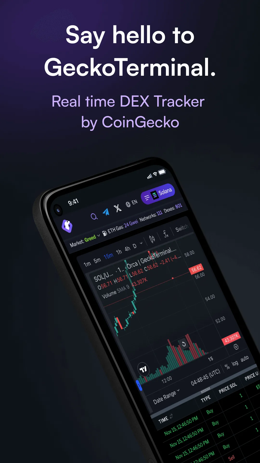 Track real-time cryptocurrency prices, trading volume, transactions, liquidity data, and more on decentralized exchanges (DEX) across all blockchains. Brought to you by the team behind CoinGecko. We provide price tracking and advanced charting tool for traders. You’re now able to: - Track 2M+ cryptocurrencies data across 100+ chains - Monitor the hottest trending pools - Explore all newly created pools...