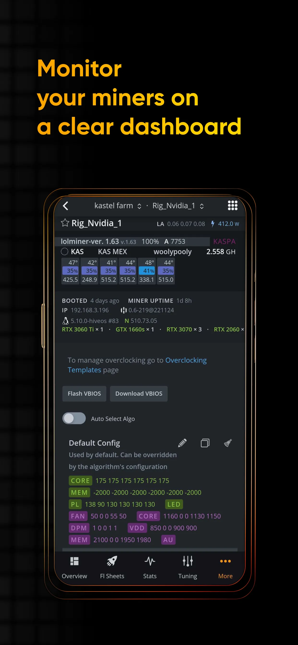 All-in-one operating system created for miners by miners. Keep track of the hashrate, online statuses, GPU/ASIC errors, team activity, pool configurations, and power consumption. Troubleshoot and reboot miners remotely, or perform bulk updates across the farm. Do this all from anywhere across the globe with Hive OS. Is it challenging to manage all your mining devices seamlessly? It will never be so with Hive OS, a cracking operating system that helps you simplify mining cryptocurrencies on GPU and ASIC devices and improve the management of your mining machines. ...
