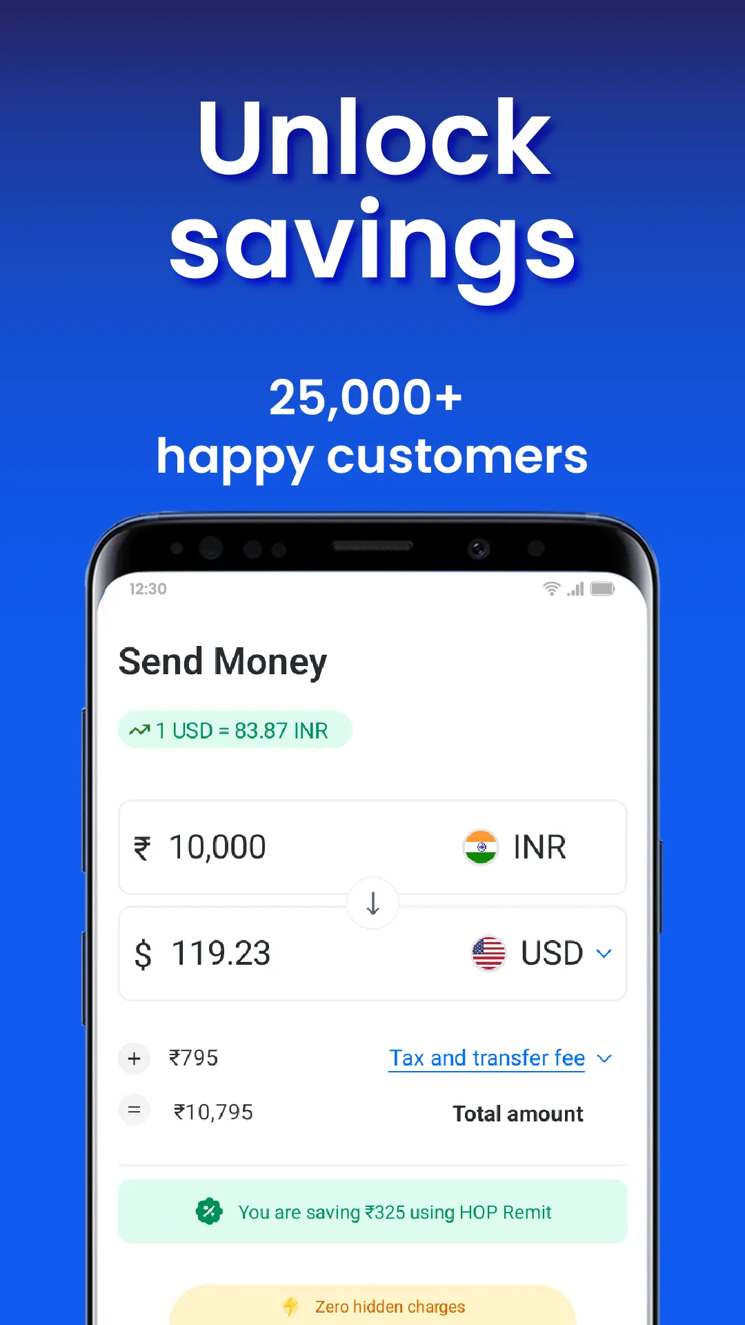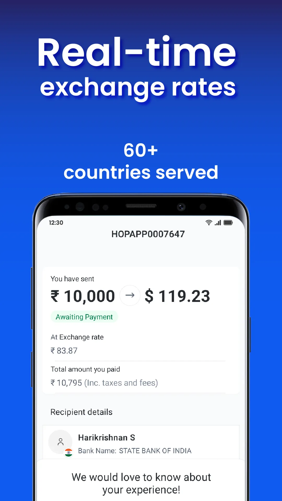 Smarter, faster, and better international money transfer with maximum savings Are you fed up with the hassle and slow pace of sending money to your family and friends abroad? Are you tired of slow, complicated international money transfers? Try HOP Remit by moneyHOP. It's the ideal solution for sending money abroad from India, offering seamless, swift, and secure transactions. Enjoy the best exchange rates, near-zero forex markup, and no hidden charges. Trusted by 25k+ satisfied customers who've transferred over INR 2,000 Cr globally. With HOP Remit, you can: ...