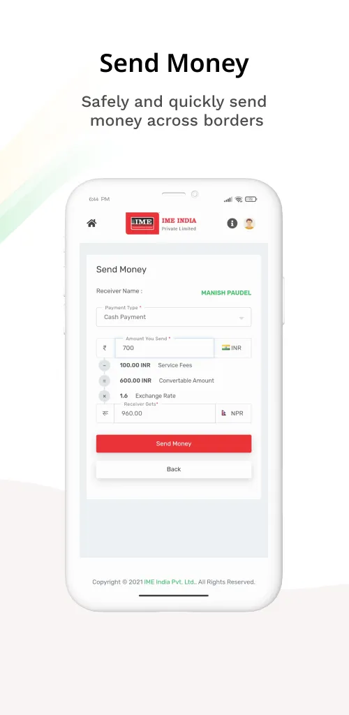 IME India is the app which facilitates any Nepali customer registered with IME India to send money directly to Nepal. This helps customer to send money directly without needing to visit the counter. Feature our customer can benefit with: Customer can send money (Indo Nepal Transaction) by adding amount through any UPI or Bank Details. Real time deposit in customers’ bank account and wallet account. ...
