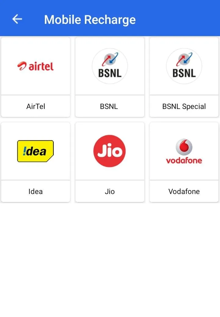 Mobile & DTH recharge ● Find latest prepaid recharge plans & best offers on Jio recharge, Airtel recharge, Vodafone Idea (Vi) recharge, BSNL recharge etc. Also recharge data cards. ● Recharge your DTH connections - Tata Play, Sun Direct, Airtel DTH, Dish TV, Videocon d2h & get cashback offers. Utilities Bill Payments - Electricity ● Make electricity bill payments across 60+ providers including - BESCOM, PSPCL, BSES, MSEB, UPPCL, TSSPDCL etc....