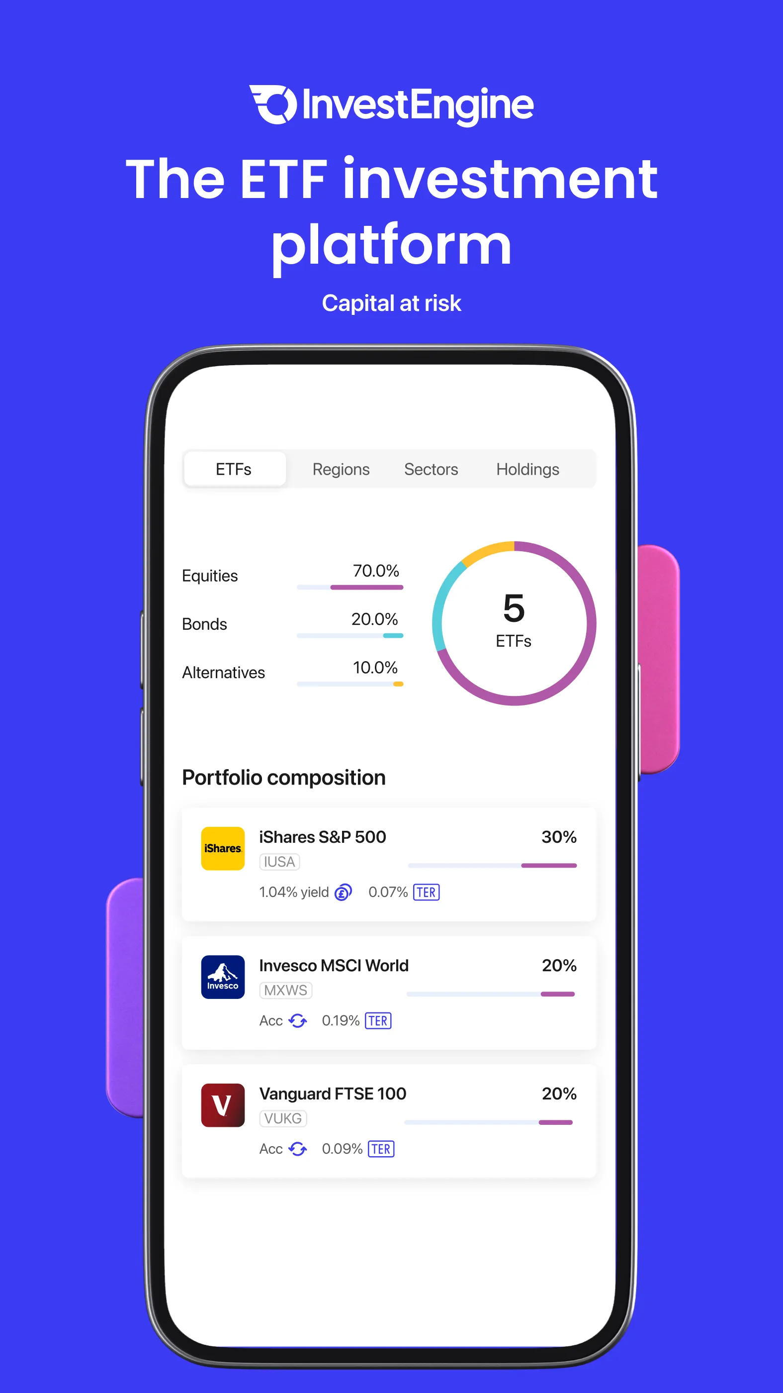 InvestEngine is an award-winning investment provider that offers unbeatable value, boundless choice, and powerful automation for your investing. InvestEngine delivers unrivalled value and innovation for your investing. No buying or selling fees on hundreds of exchange-traded funds (ETFs) from iShares, Vanguard, and other leading brands. With robust tools for automating, diversifying, and analysing your portfolio, it's all you need to grow your wealth. How would you like to invest? • Do it yourself — Take control of your investments with our commission-free DIY portfolios....