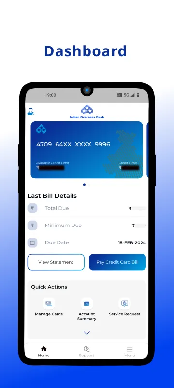 Indian Overseas Bank Credit Card app – Supports Credit Card Management The functionalities of the application are given below Secure Login with Multi-factor authentication View Statement Transaction details View Account Summary Disable card Activate Card Service Request Manage transaction preference Generate Card PIN Create EMI Pay Credit Card Bill