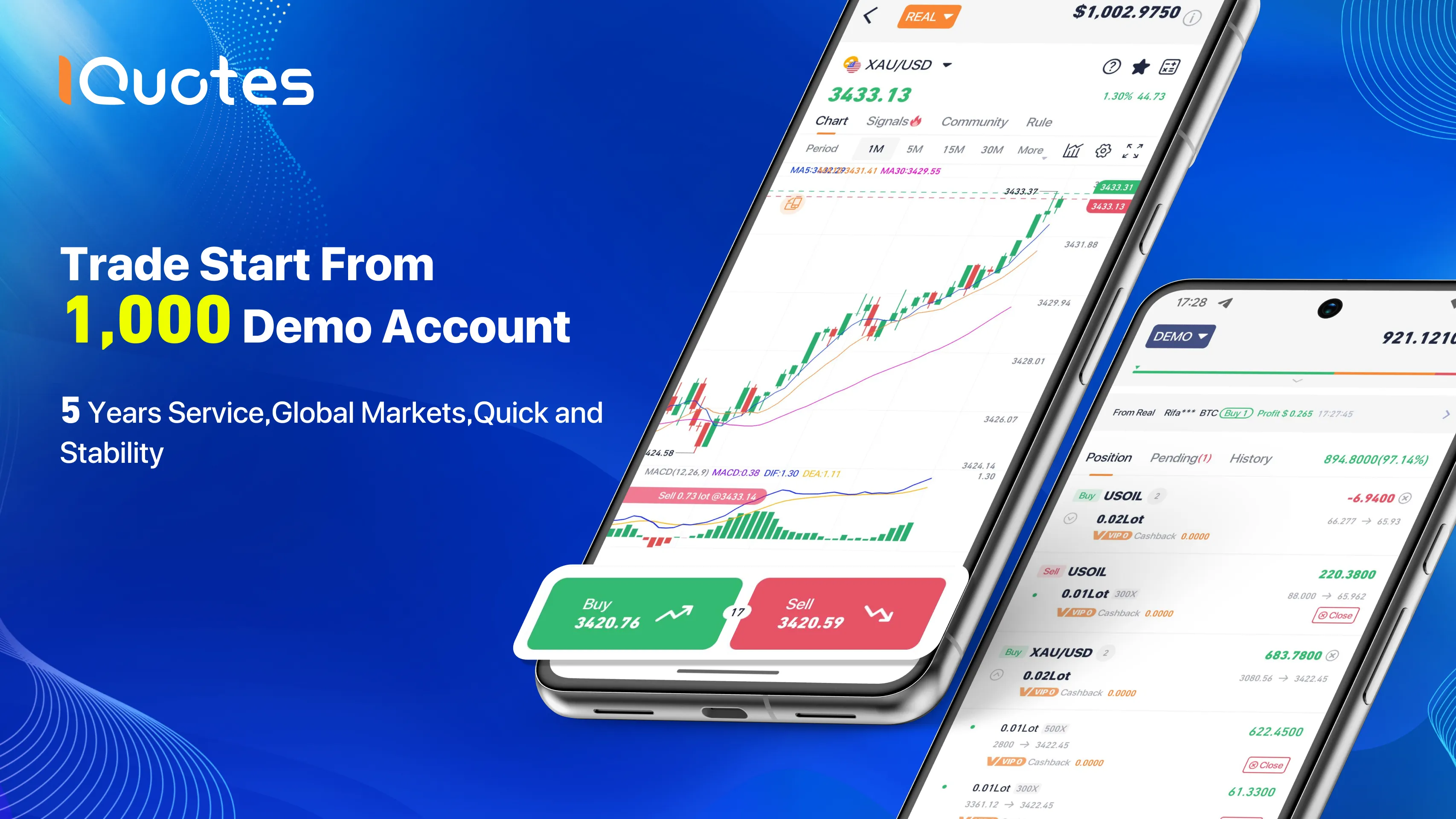 Providing more than 30 trading assets, including stocks, gold, foreign exchange, indices, etc., with low handling fees, high leverage, and comprehensive trading analysis information and tools. Why choose iQuotes? Suitable for novice traders ...