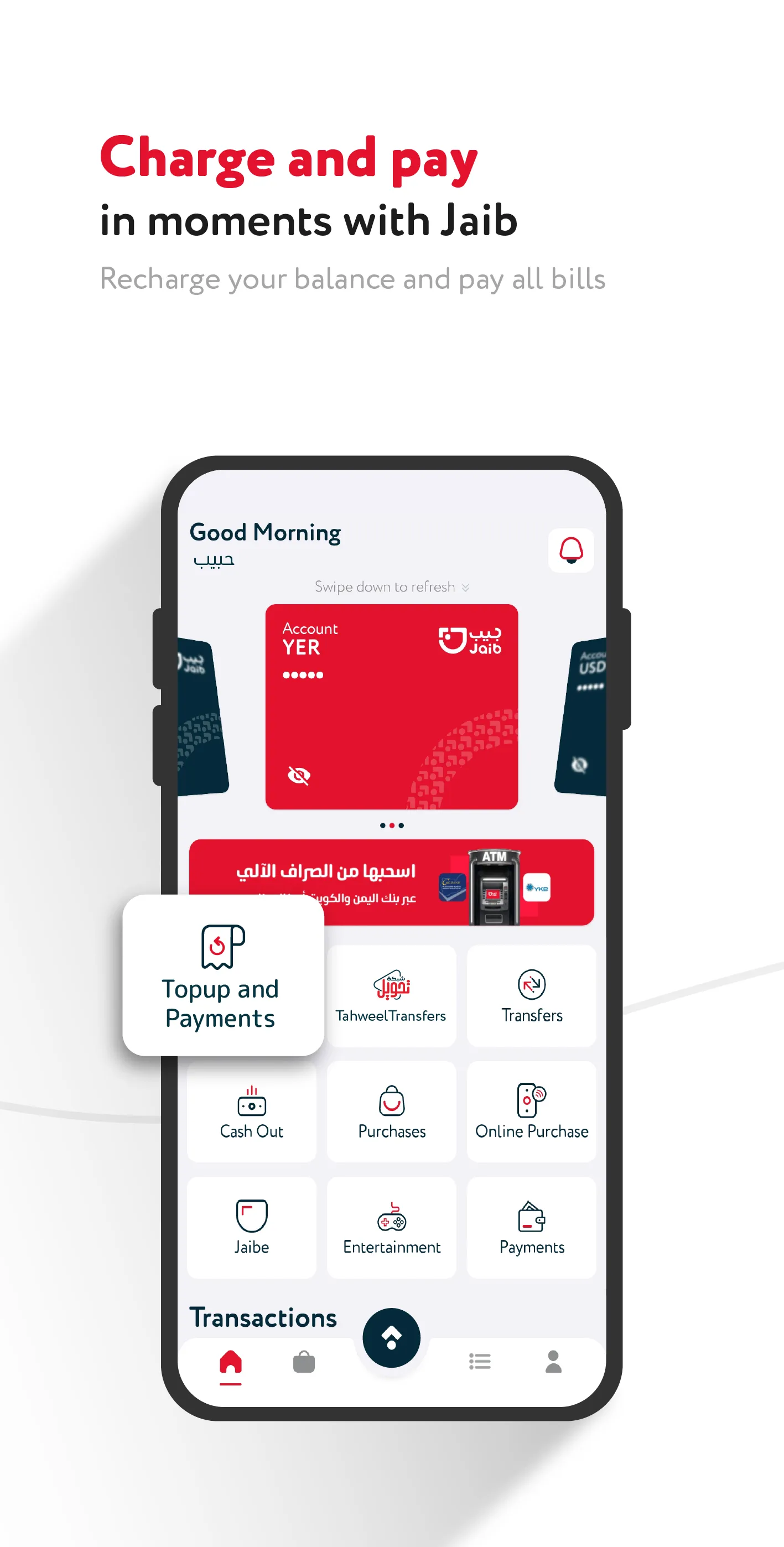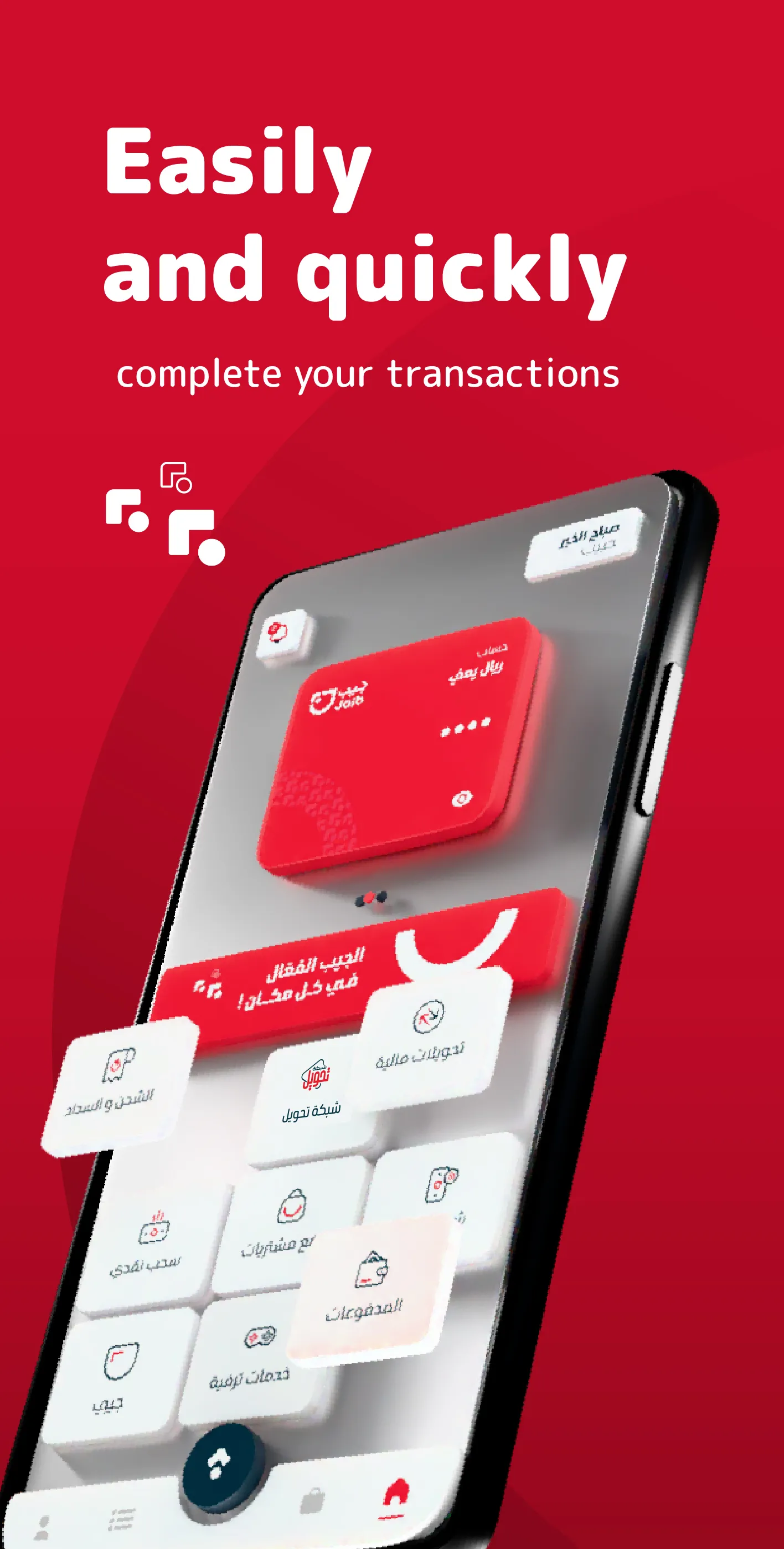 Jaib is an electronic wallet that works with innovative and intelligent technologies that facilitate various financial transactions through an application that is downloaded to your phone to save your money and use it for electronic payments for purchases, to recharge your balance, to make financial transfers, and any other financial transactions. Therefore, Jaib is an electronic cash service, an alternative to cash and the problems of currency damage and other problems that individuals suffer from in their financial transactions. Jaib provides services that meet all your basic and entertainment needs, most notably: This app is not intended for users located in the EU/EEA. ...