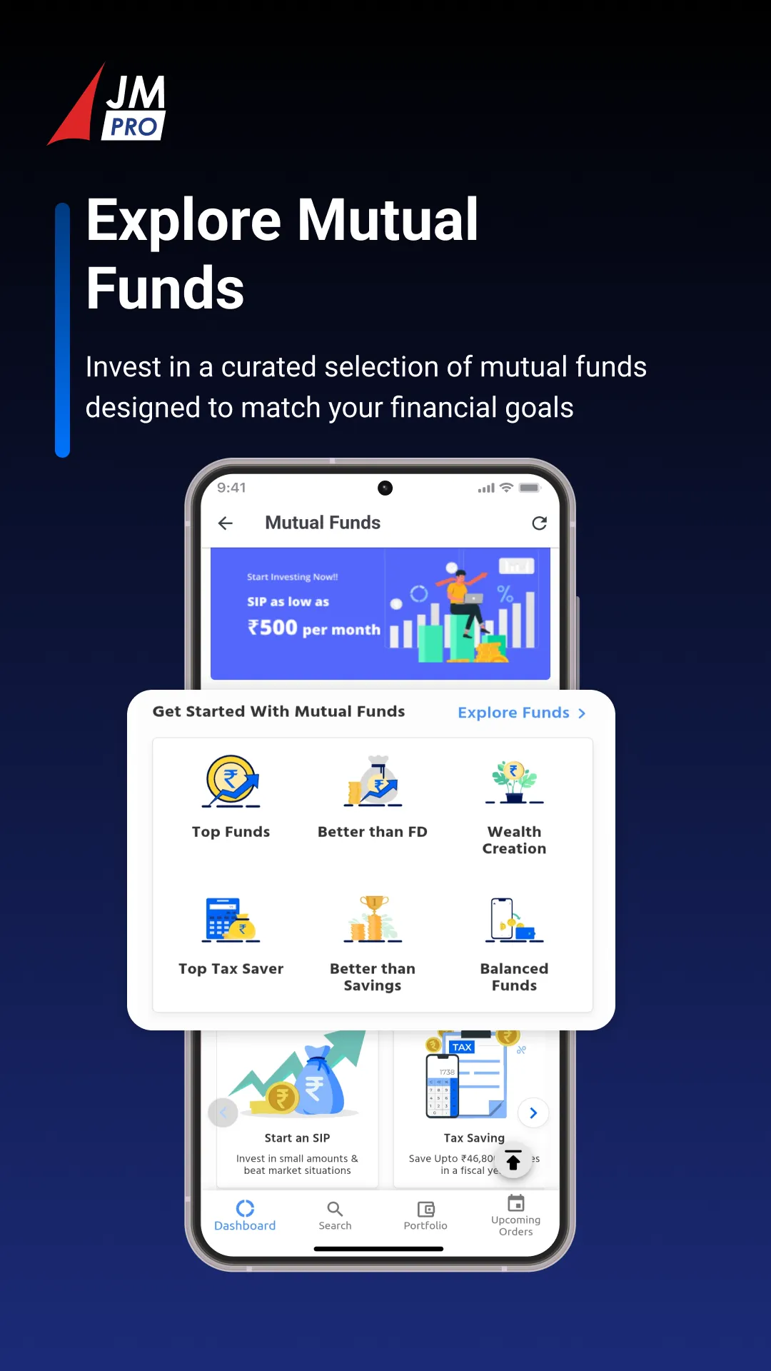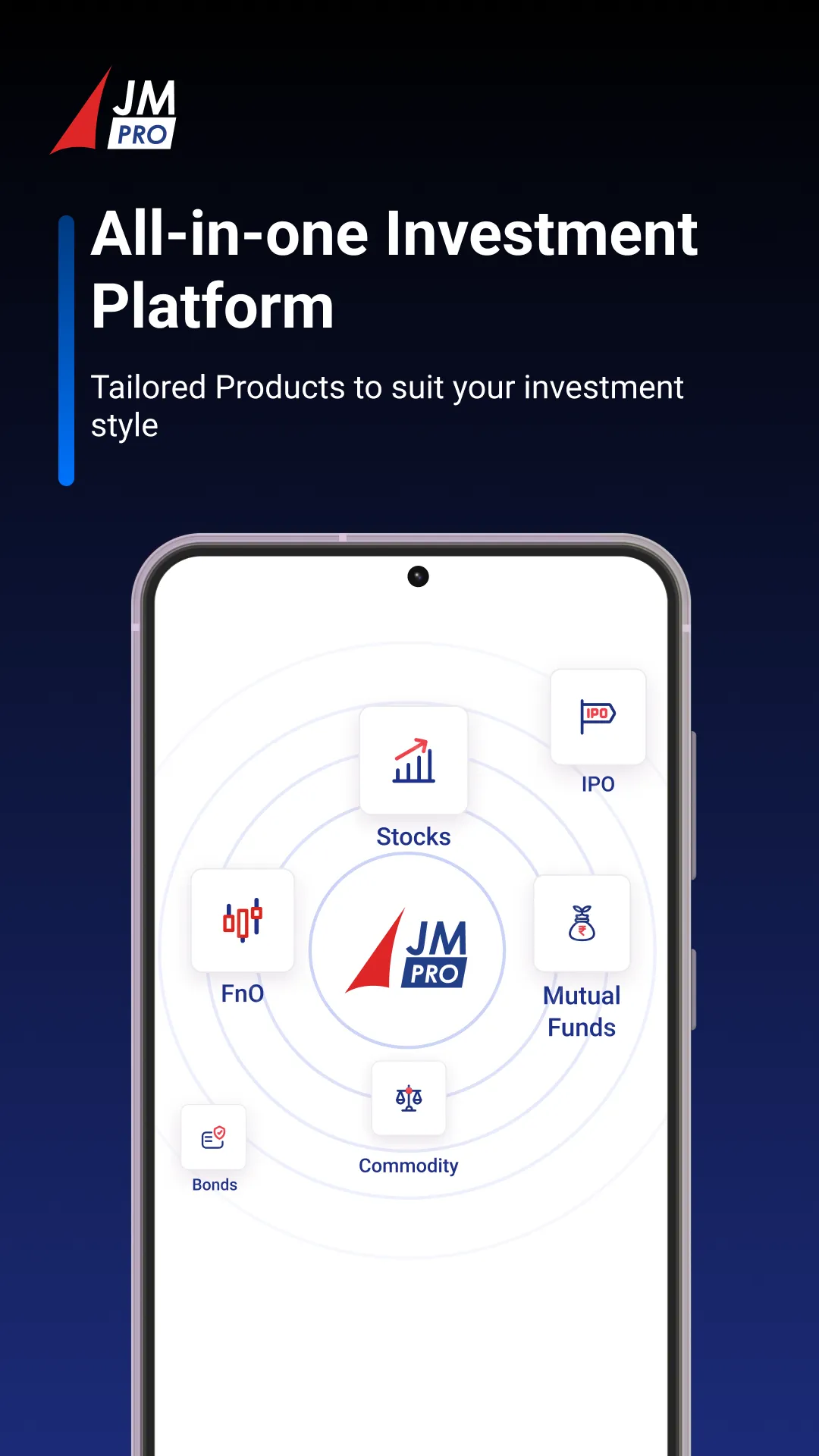JM Pro: Secure Trading and Investment Platform by JM Financial JM Pro is a secure, multi-asset demat app by JM Financial, designed for easy, flexible, and seamless investing. Manage everything - from stocks, mutual fund SIP, IPOs, and Margin Trading Facility to ETF stock tracking and more. Whether you’re a beginner or an active trader, JM Pro simplifies investing with smart tools and research-driven features. Highlights of the App - All That JM Pro Can Do ✓ Open demat account through simple paperless process...