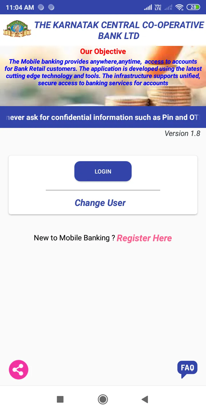 The Karnatak Central Co-Opeartive Bank Ltd., Dharwad, Mobile Banking application allows you to access your bank account using your registered mobile number.