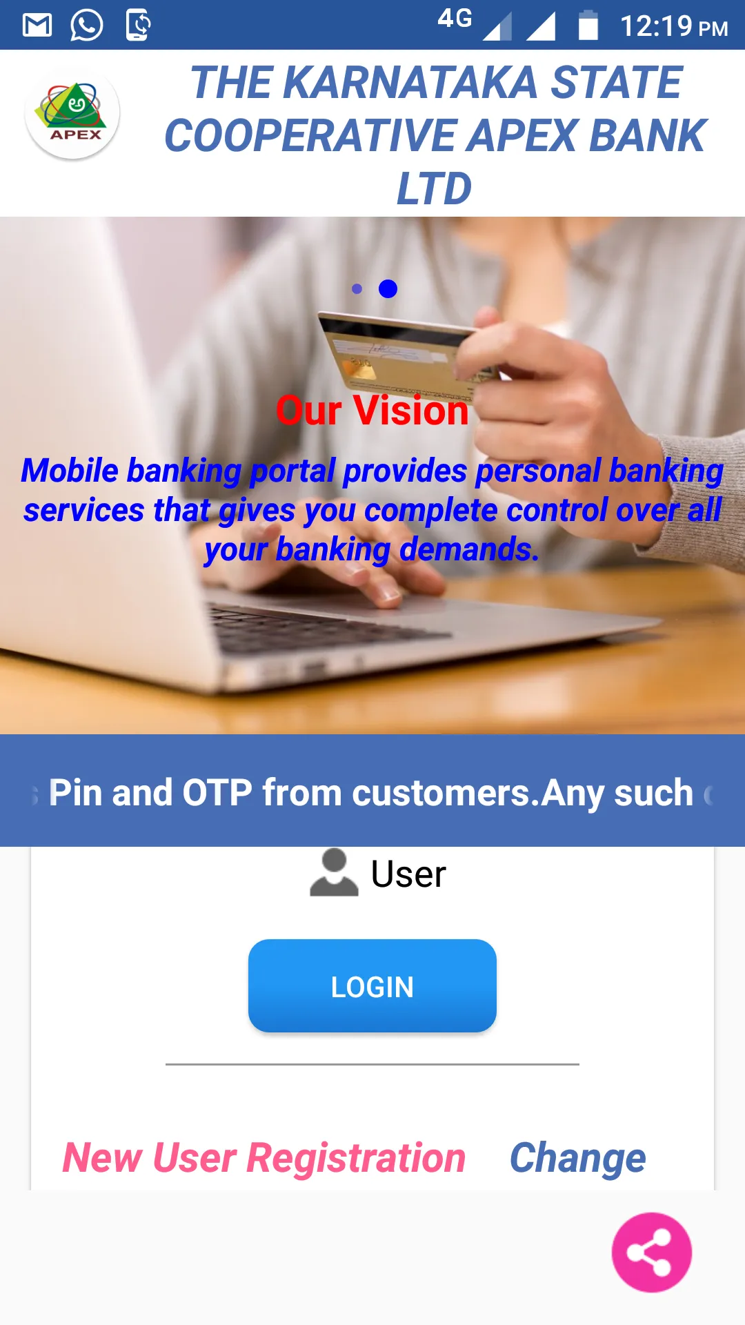 Mobile Banking application for Smart Phone customers of KSC Apex Bank supporting English and selected languages. A safe, convenient and easy to use application with a host of features to help users manage your finances on the move. Download from Google Play store only. Do not use any other websites for downloading this application. The following are the features of the app:- My Accounts • Detailed Account Summary (Primary / Deposit / Loan /Closed accounts) • Mini Statement (Last 10 transactions)...