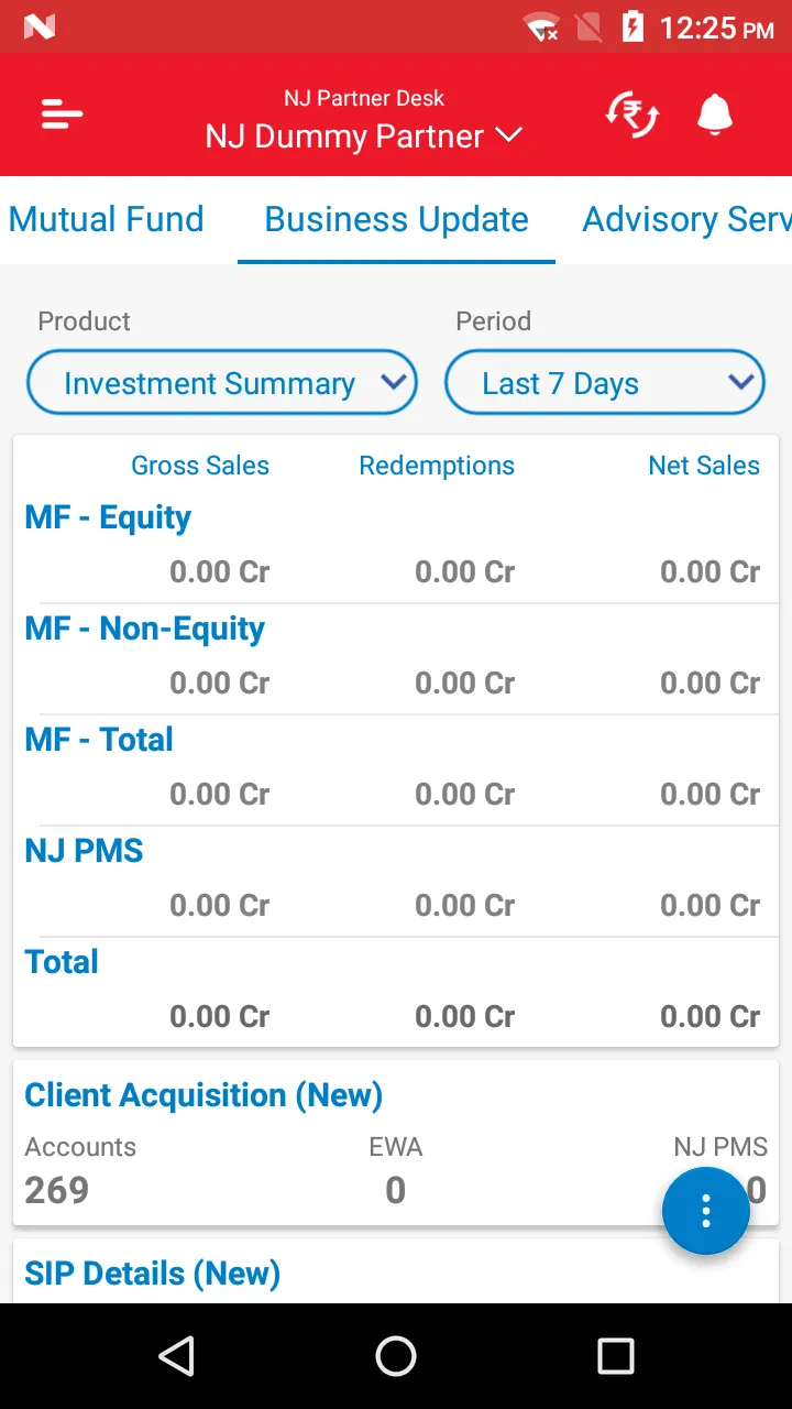 NJ Group launches Partner Desk Mobile Application. This application helps you to check your Recent MF Transaction, SIP Updates and Client Info while on the move. Note:- To access this application, you require Login ID & Password provided by NJ Wealth - Financial Products Distributors Network. To know more about NJ Wealth - Financial Products Distributors Network, please visit our website http://www.njwealth.in.