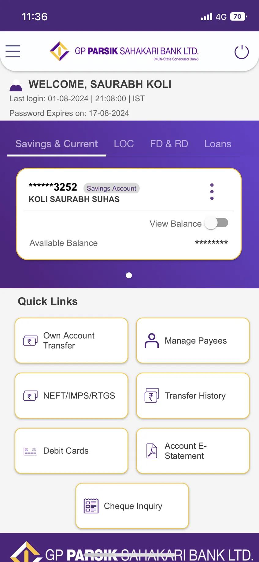 This is Parsik Bank Mobile Banking Application. This application has many features like, Balance Enquiry, Mini Statement, Immediate Payment Service, Overall Balance, Card Management etc.