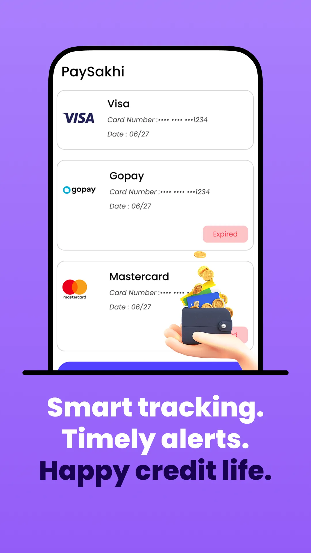 PaySakhi — Smart Credit Card Bill Manager Manage your credit card bills with confidence and control. PaySakhi is your trusted personal assistant for credit card management. It helps you track spending, analyze bills, and avoid late payment fees — all in one secure app built for India’s modern users. ...