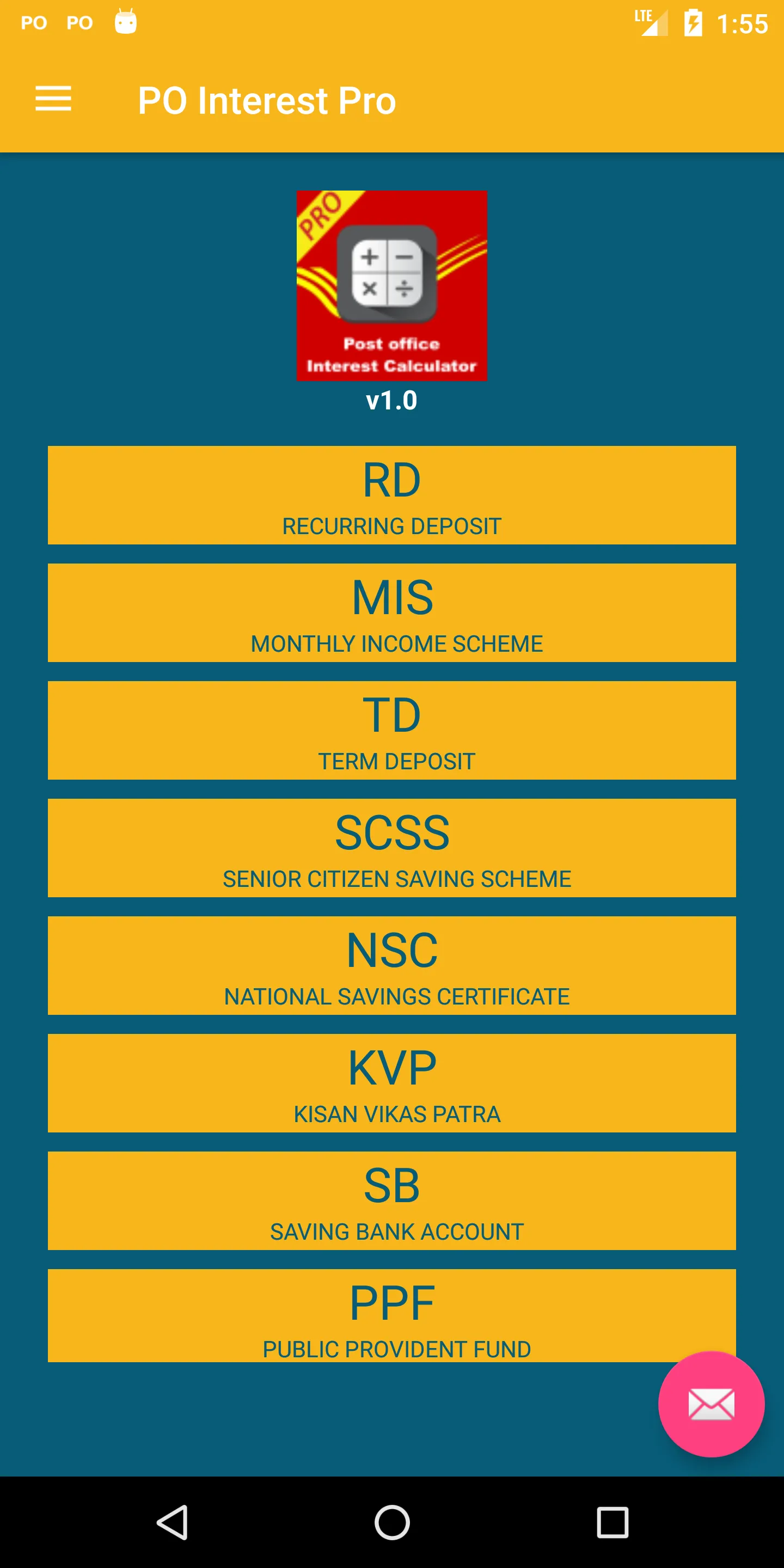 PO Interest Calculator Pro helps user to calculate the interest for most of the saving schemes. It has knowledge base of last history of the interest for different schemes. PO Interest calculator Pro ( Post Office Interest Calculator ) app has historical interest rates. Application users do not have to remember about the interest percentage. Just change the date when your scheme has started, It will take the interest rate automatically. Please check the video link below to learn to use the application. ...