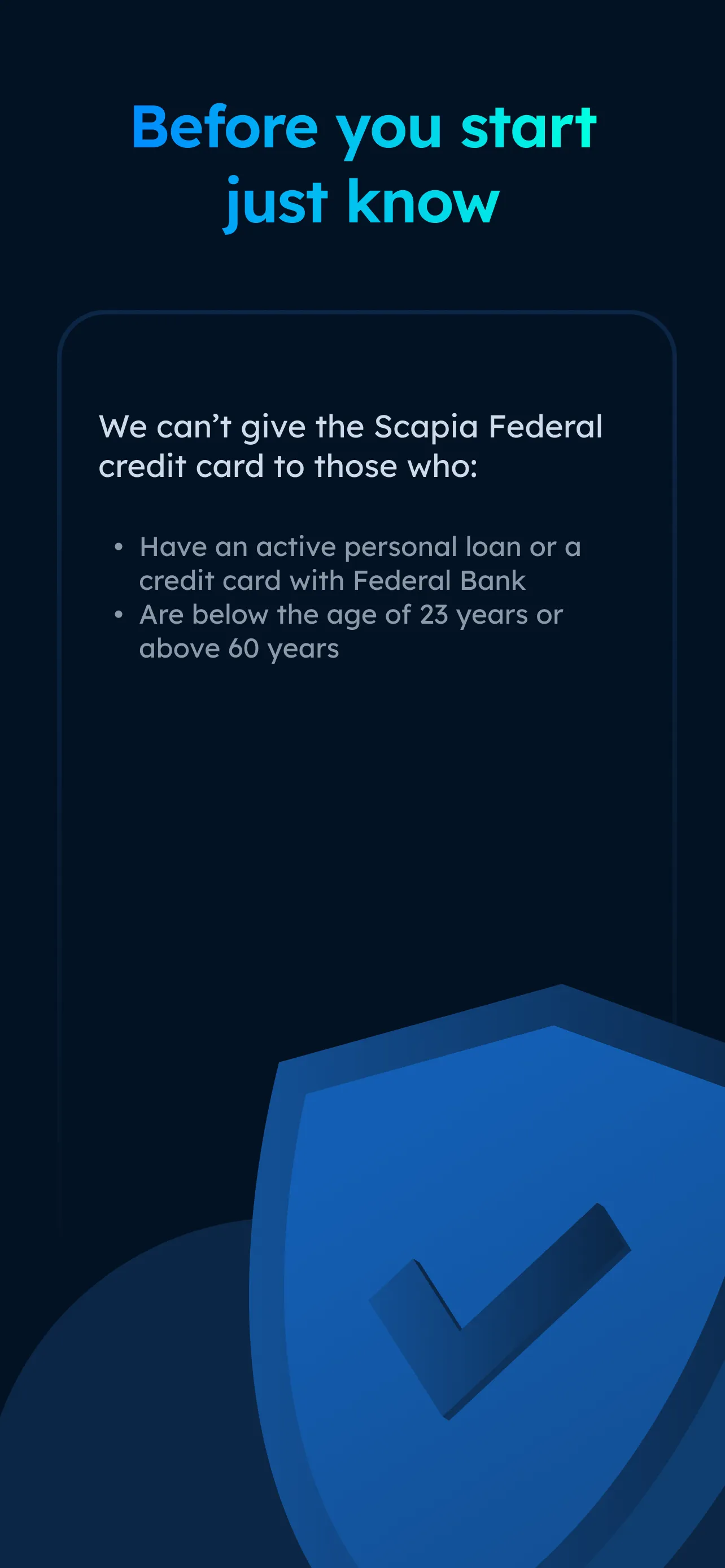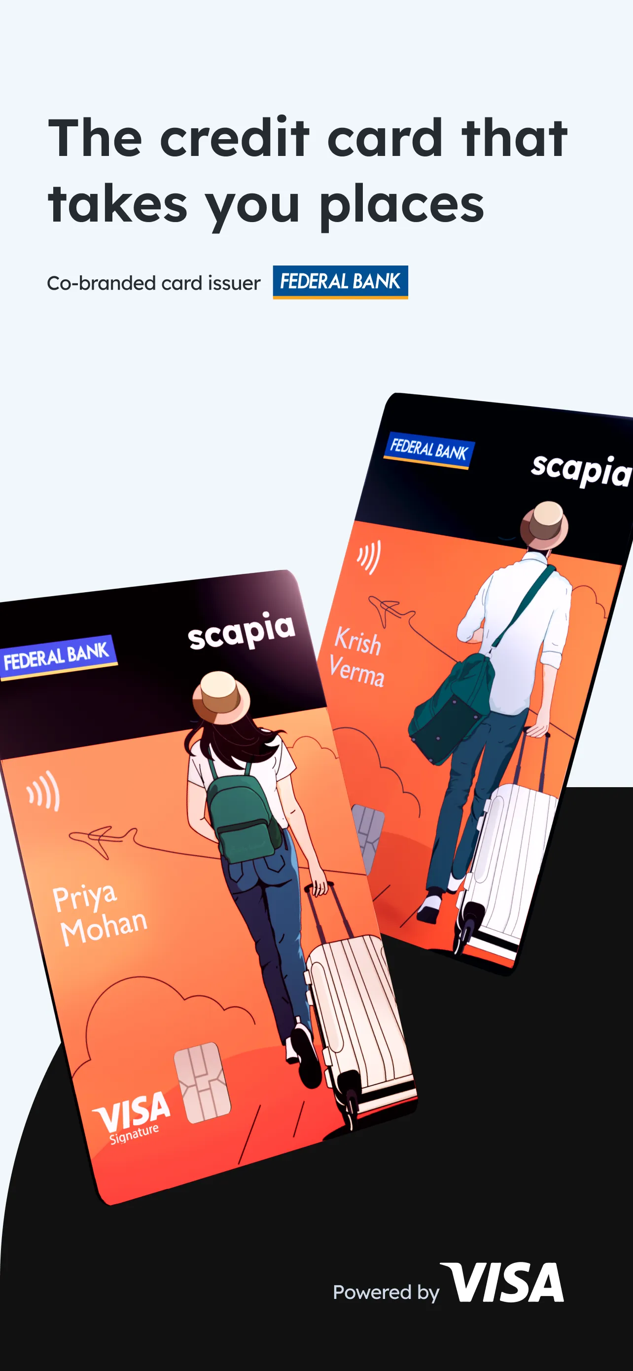 Travellers, come aboard. But, before that we want you to know. While we'd love for everyone to join the Scapia tribe: If you have a credit card or personal loan with Federal Bank, we won't be able to give you the card....