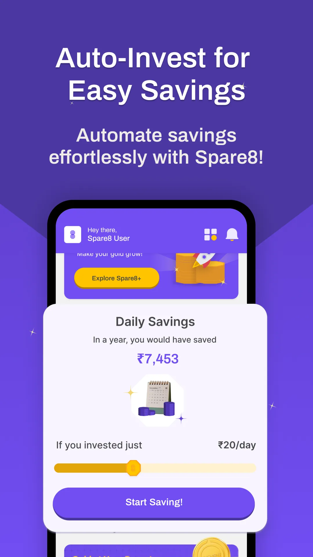 Fastest way to earn 16% returns; now earn 16% with Spare8 digital gold leasing. Embark on a journey of financial empowerment with Spare8, where we shatter the notion that investing is complex and exclusive. Regardless of age or income, every Indian can seamlessly invest in digital gold and now, experience the innovative Gold Leasing feature. We're bringing superior returns of up to 16% and rewards like never before, earn evetime you spend, save, or lease digital gold with Spare8 ...