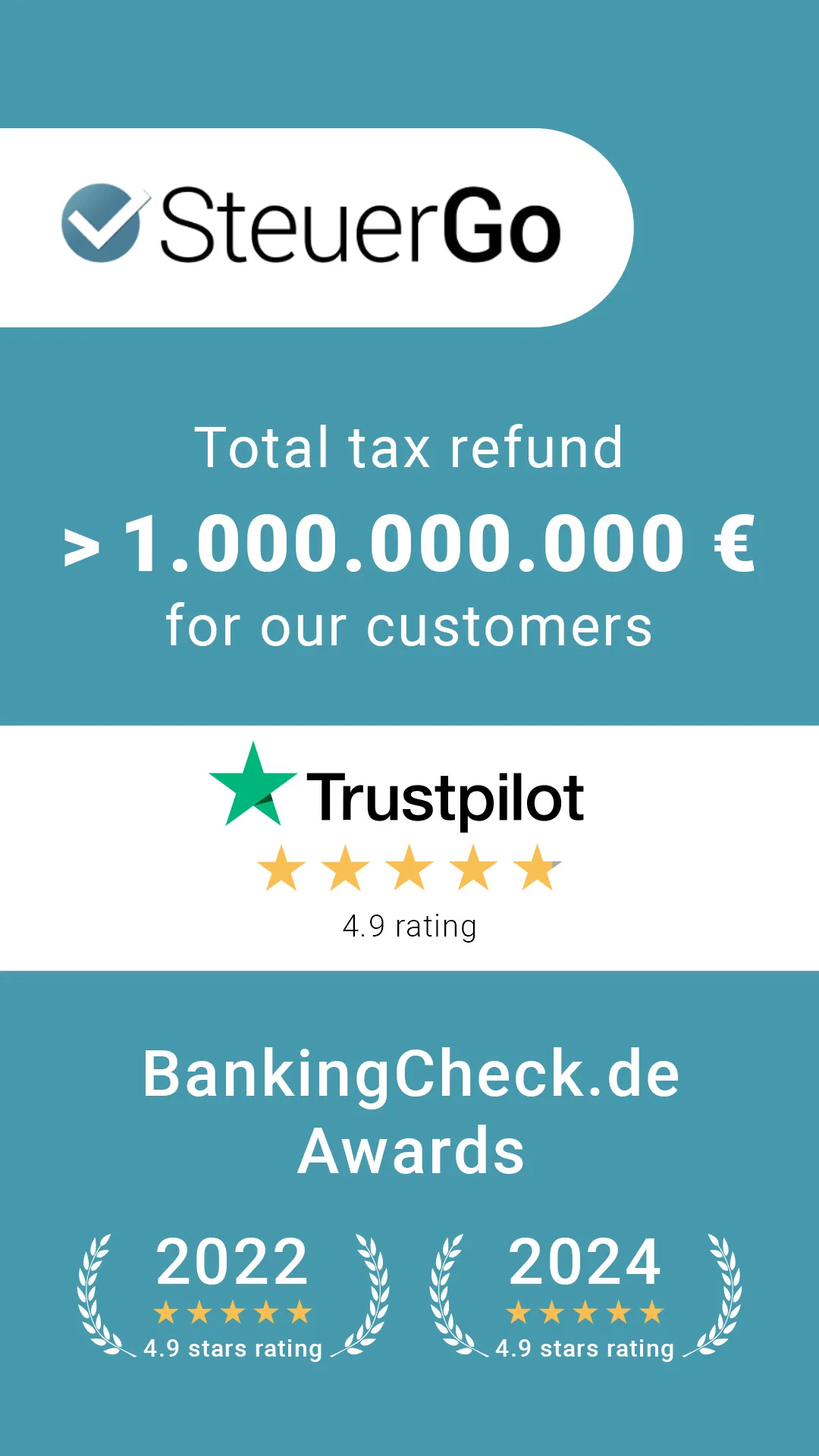 Get the maximum refund with Germany's best tax app 2024: SteuerGo was awarded the 1st place of the App Award 2024 in the category "Tax apps". STEUERGO – THE ULTIMATE TAX SOLUTION FOR EXPATS IN GERMANY SteuerGo simplifies the process of filing income tax returns for expats living in Germany. You do not have to be a tax expert or a German speaker. Our user-friendly tax app is designed to support you with helpful tax tips and explanatory texts, available on both mobile and web platforms. Our users, on average, receive over €5,000 in refunds for four tax returns. SteuerGo covers all relevant income types, making it ideal for employees, mini-jobbers, students, freelancers, self-employed individuals, retirees, savers, investors, and landlords. ...