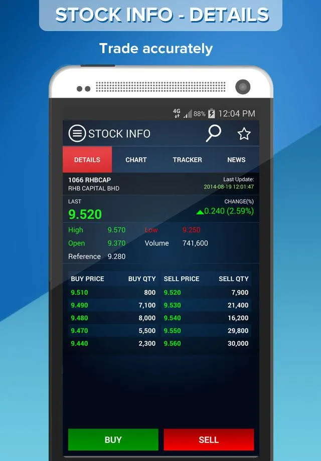 RHB TradeSmart Dealer Mobile app allows you to manage your clients’ trading activities on the go. This app is only for RHB’s dealers and remisiers to manage clients’ share trading activities. The features on this app include: • Managing clients’ buy and sell requests for stocks • Real-time BURSA stock prices for you to monitor and inform your clients when prices hit • Handle foreign market trades for your clients. Trade on top stock exchanges such as SGX, HKEX, NASDAQ, NYSE and AMEX...