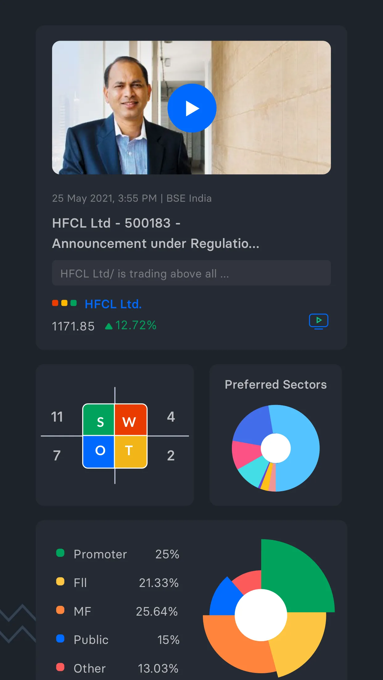 Trendlyne brings you powerful stock market tools, Nifty Sensex, IPO, MF and F&O analysis Skip bad investing advice with the Trendlyne mobile app. With 20+ 'only on Trendlyne' features, we are India's most powerful stock market app. The Trendlyne mobile app brings you NSE and BSE market feeds, realtime screeners, analyst estimates and share price targets, and Trendlyne's trademark DVM Stock Scores. It also brings you F&O (with options screeners) unlimited realtime alerts, charts, research reports, SWOT, portfolio and watchlist tools, and a newsfeed, in one powerful app. Trendlyne also tells you what's happening with actionable stock insights, so that you can stay on top of the market. ...