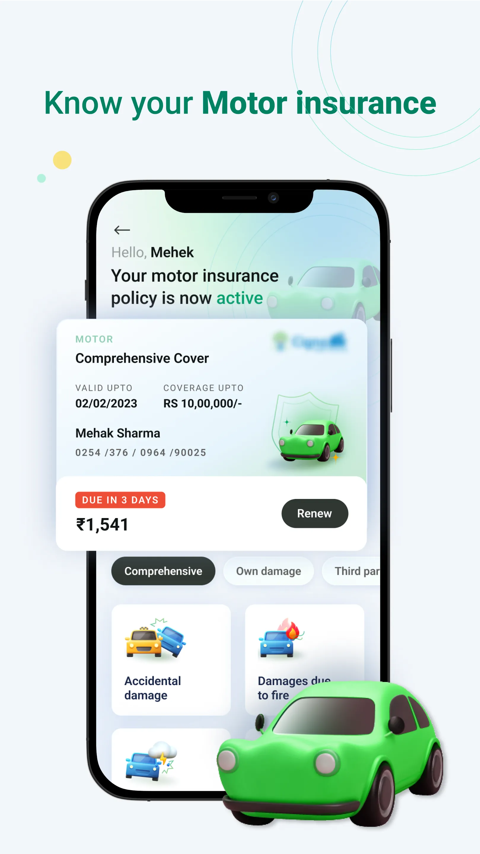 Manage all your family insurances in your pocket! Worried about losing your policy documents? Still carrying a copy of your vehicle insurance? Go paperless and save yourself the hassle. 24/7 Expert Support for your insurance claims Rest assured that you are only one call away from the Turtlemint Expert Claims Support who will guide you through your rainy days and protect your financial security. ...