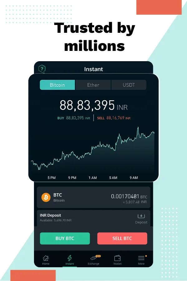 Trade anytime, anywhere! The Unocoin app is tailored especially for trading and managing your crypto account in the quickest way possible. Trusted by millions and loved by all, you can sell, exchange, and buy crypto assets like Bitcoin, Doge, Shiba Inu, Ether and over 80+ coins on the Unocoin app. Unocoin is India’s first crypto asset and blockchain company set up in 2013. Unocoin has consistently aimed and delivered a seamless trading experience to many. Be it a crypto beginner or advanced trader, we give you the power and guidance to chart your own financial course. Thanks to our excellent services, handy tools, low fees, versatile funding options and rigorous security standards, you can now get all the necessary and required assistance for the best, from the best . ...