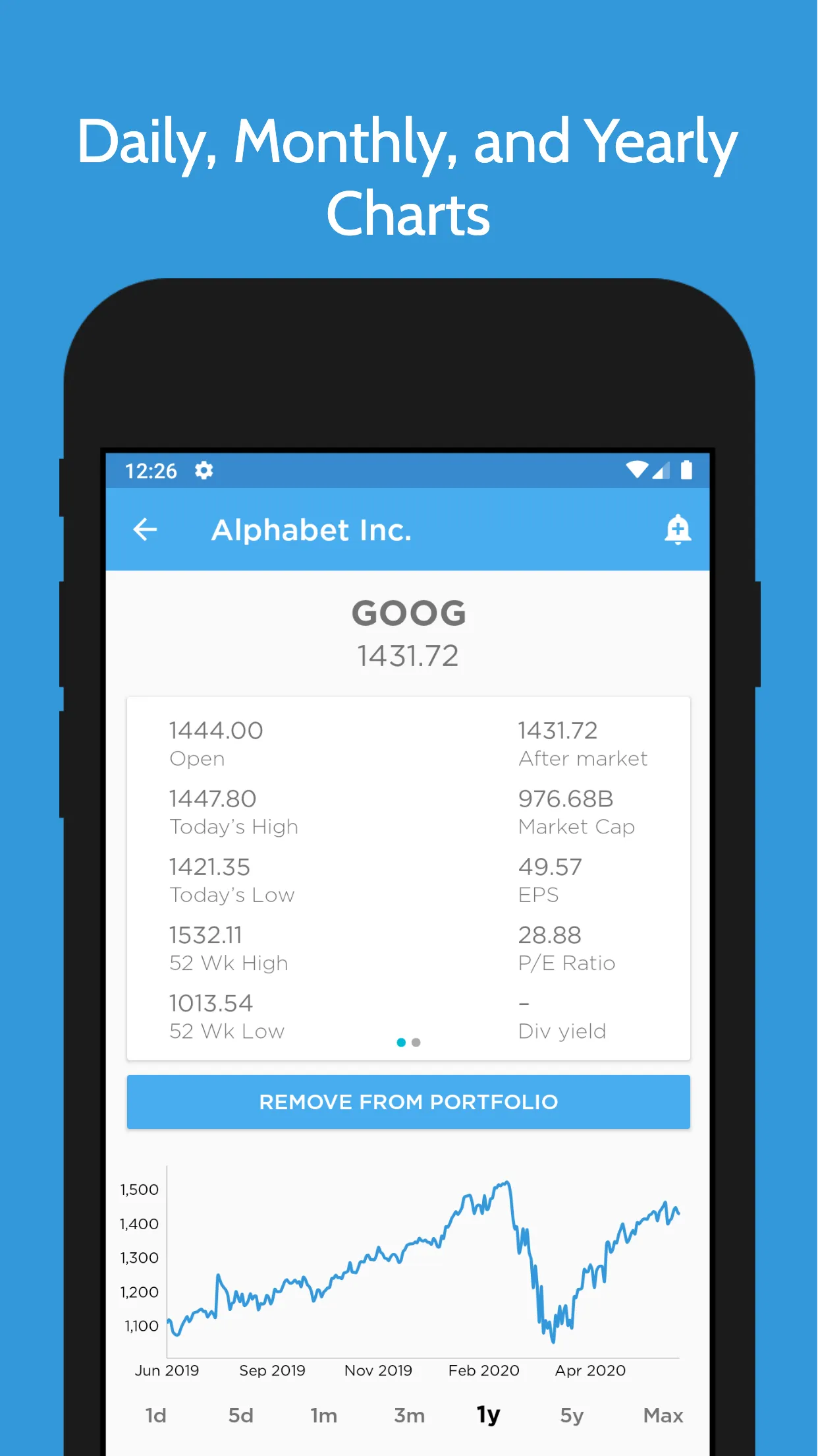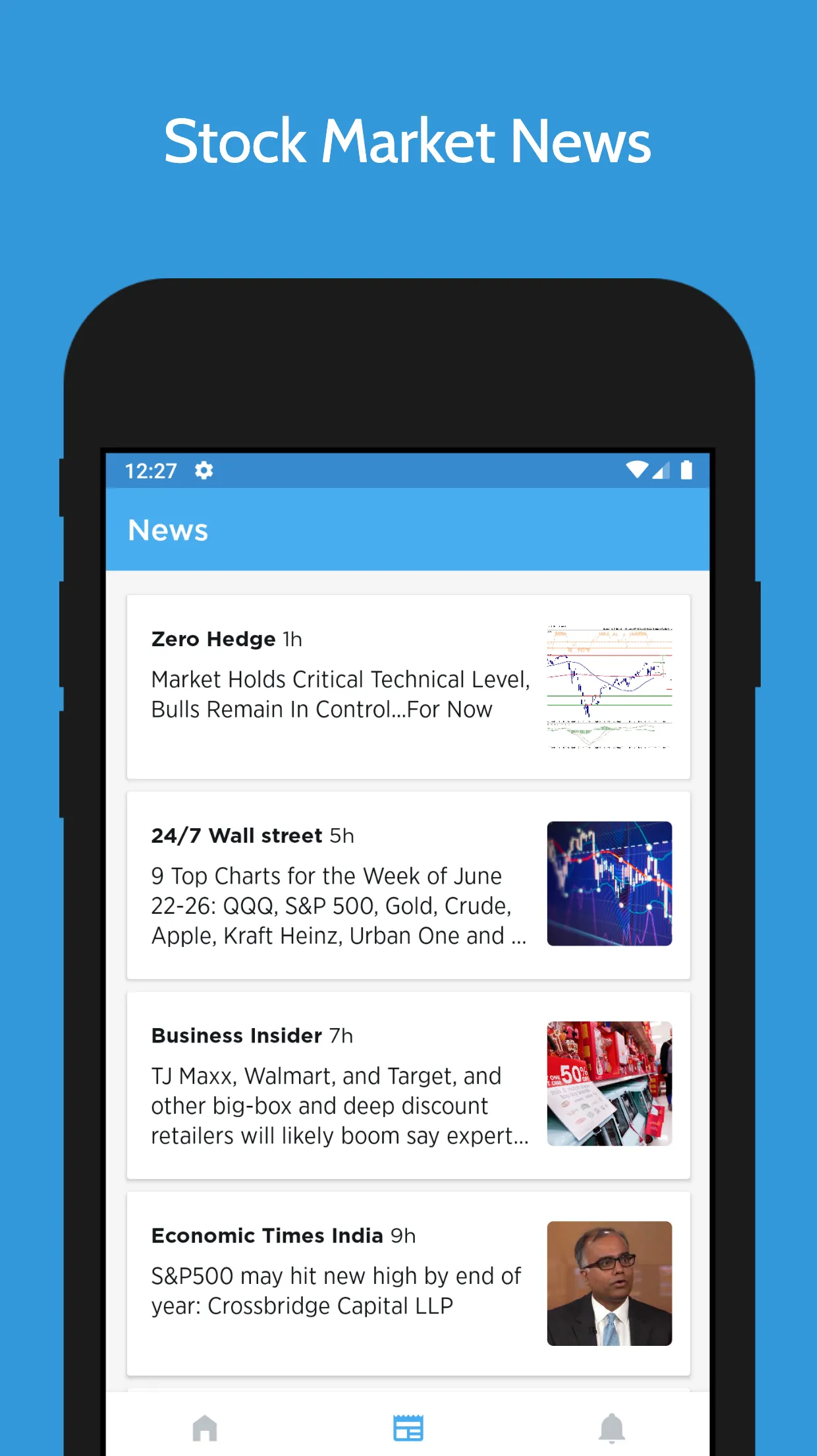 Stock Market Tracker helps you track your portfolio and watch US stocks and the global stock market. Live market data from NYSE, Dow 30, S&P, and more. Build your portfolio and get stock price alerts with the best stock market app for Android. ★ Real-time stock quotes for NYSE, NASDAQ, Dow Jones, ETFs, Indices, S&P 500, and more! ...