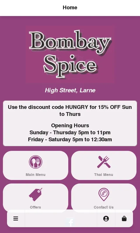 Welcome to Bombay Spice Indian Restaurant Located on High Street in Larne, we are a traditional Indian Restaurant. We provide for collections and delivery orders with Indian, European and Kebabs. We are open seven days a week. On our menu you will find all your favourite Indian dishes made with fresh ingredients and chef's traditional recipes. We have something for everyone and excellent value meal deals available. Download our App for our latest deals and offers.