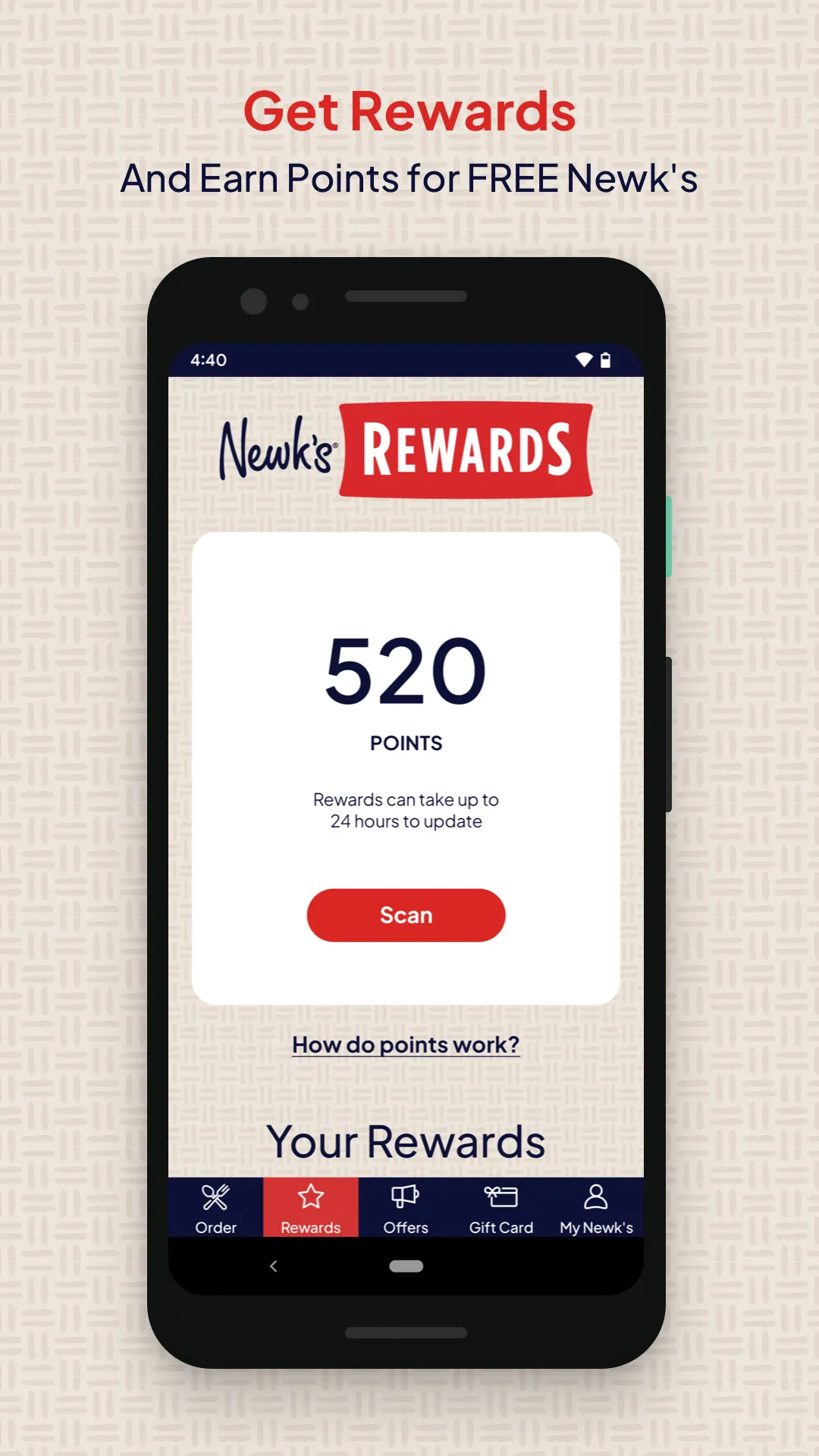 Newk's Rewards is here! Sign up today to earn points and get FREE Newk's. Here's how it works: Earn points while dining in, picking up, grabbing curbsiote, or getting delivery through the Newk's Eatery app. You'll earn 10 points for every $1 you spend. Then, unlock FREE Newk’s food with your points – Rewards like FREE Sandwiches, Soups, Pizzas, Desserts, and more! Plus, get exclusive deals from your favorite Newk's Eatery location. When you sign-up, you’ll get an instant offer to use right away. You will also receive a birthday reward the week of your birthday, exclusive news, and perks for referring friends....