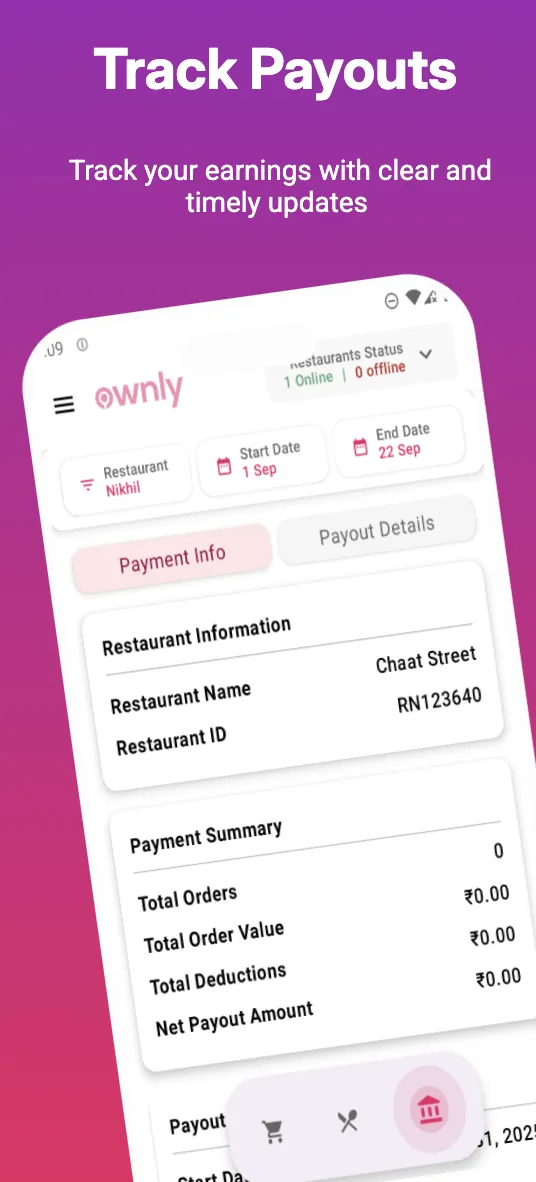 Ownly Restaurant Partner App is the ultimate platform for restaurants to manage online orders, streamline operations, and grow their business with ease. From accepting orders to tracking performance, everything is designed to give you complete control at your fingertips. Join the fast-growing Ownly partner network and deliver delightful food experiences to your customers. Download now and start managing smarter, earning better, and being part of our mission to make dining simple, reliable, and r...