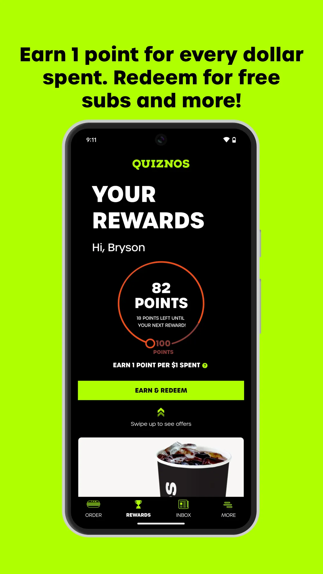 Download the Quizzy Rewards loyalty app to begin earning FREE FOOD at Quiznos! Find the closest Quiznos location, place your order for pick up or delivery, and get exclusive offers and discounts through the app. Quizzy Rewards allows you to: - Receive special offers and the latest news - Find the nearest location to you to satisfy ALL of your cravings – subs, salads, soup, chips, cookies and more! - Get a special offer for signing up and referring friends