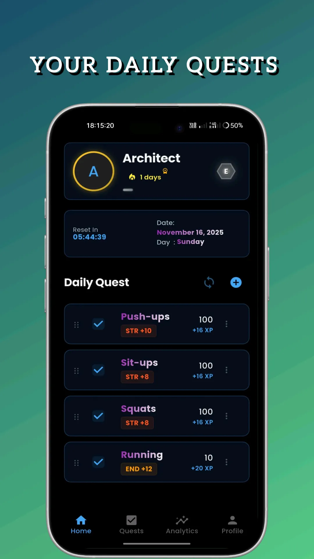 Unleash your inner shadows and transform your life journey with ARISE SOLO, the ultimate RPG-inspired app! Inspired by the world of Solo Leveling, ARISE SOLO gamifies your daily exercise, turning every workout into an epic quest for self-improvement. Key Features: - RPG Progression: Level up your character by completing real-life workouts and quests. Earn experience, unlock achievements, and watch your stats grow as you get stronger in real life. - Daily & Weekly Quests: Stay motivated with a variety of quests and challenges tailored to your fitness level. Complete daily and weekly goals to maintain your streak and earn rewards....