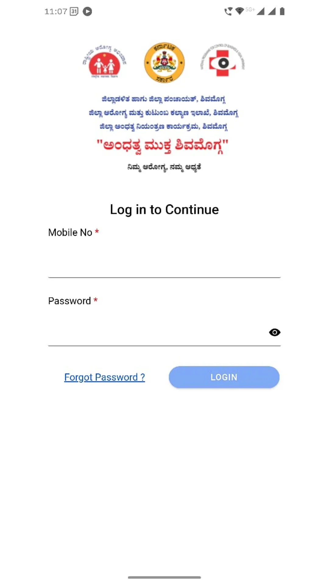 Blindness Free Shimoga is a public health initiative aimed at eradicating preventable blindness in Shimoga district, Karnataka. This app is designed to help community health workers (ASHAs), healthcare professionals, and program administrators collect, manage, and monitor vision screening data at the grassroots level.