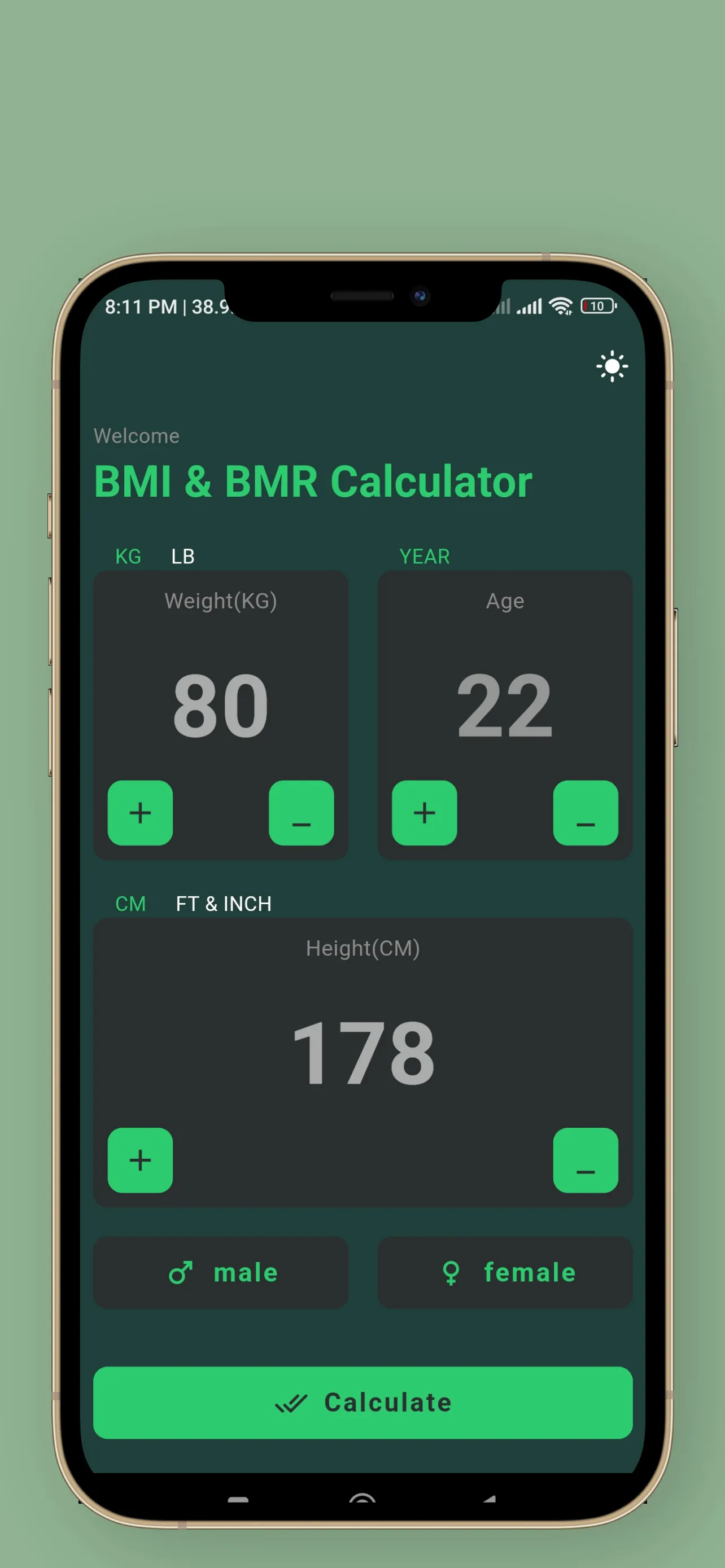 Welcome to the BMI and BMR Calculator app – your ultimate tool for accurately gauging Body Mass Index (BMI) and Basal Metabolic Rate (BMR). Now with a refreshed UI design, this app empowers users to seamlessly measure their BMI and BMR, providing valuable insights based on weight, height, age, and gender. Main Features: Effective Weight Management: Tailor your fitness journey with precision using our revamped app, ideal for weight loss or gain programs. Determine your BMI to understand if you're underweight, normal weight, or overweight, aiding you in achieving your fitness goals. ...