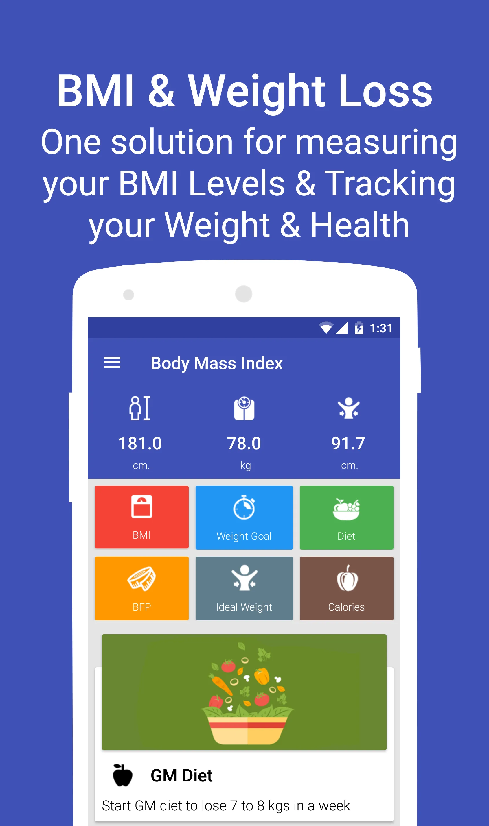 BMI Application helps to calculate the healthy & accurate Height to weight Ratio and informs if the person is currently Under Weight, Normal Weight or Over Weight and Obese. Along with BMI Calculator, this application also features Body Fat Percentage Calculator, Daily Calorie requirements, Ideal Weight Calculator and more. ❖ Features of the Application❖ ...