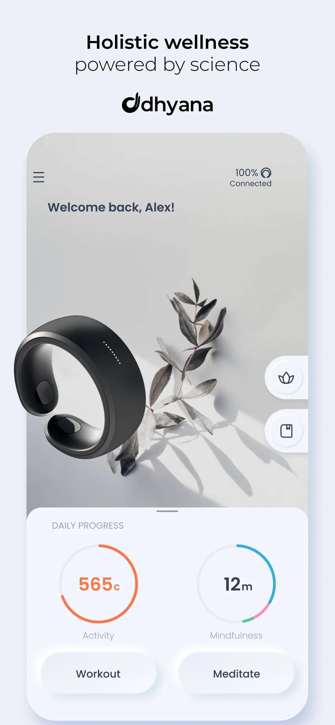- The dhyana smart ring lets you level up your full potential with mindfulness and fitness tracking. - NO SUBSCRIPTION FEES to see your data! - Monitor your SLEEP, your VAGAL TONE, your STRESS LEVELS and your READINESS continuously. - Get LIVE BIOFEEDBACK about your mindfulness practices along with hundreds of curated mindfulness content. - Track your meditations and mindfulness even while using other apps like HEADSPACE & CALM. - Enable workout mode in your ring and BEAT-BY-BEAT HEART RATE INSIGHTS ABOUT YOUR WORKOUTS....