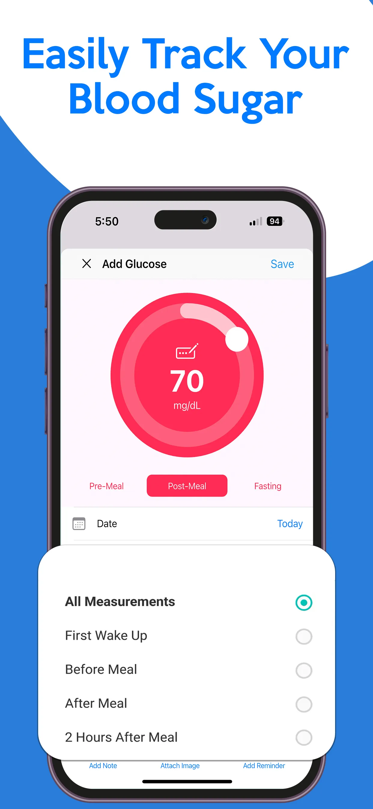 Elevate your daily diabetes management with a professional diabetes tracker and blood sugar log app built for clarity, reliability, and ease of use. Record readings manually (no hardware required), visualize patterns with clean charts, set smart reminders, and export shareable reports for your next check-in—all in one secure glucose tracking app. Why users choose this diabetes logbook Manual blood sugar logging — Record fasting, pre-meal, post-meal, bedtime readings, plus custom notes & tags. Comprehensive health tracking — Add blood pressure, weight, medications, activity, and lifestyle context to your diabetes log. Trends & insights — Understand patterns over time with clear charts designed for better conversations with your care team. Smart reminders — Set alerts for checks, medications, and follow-ups so your diabetes management stays on track....