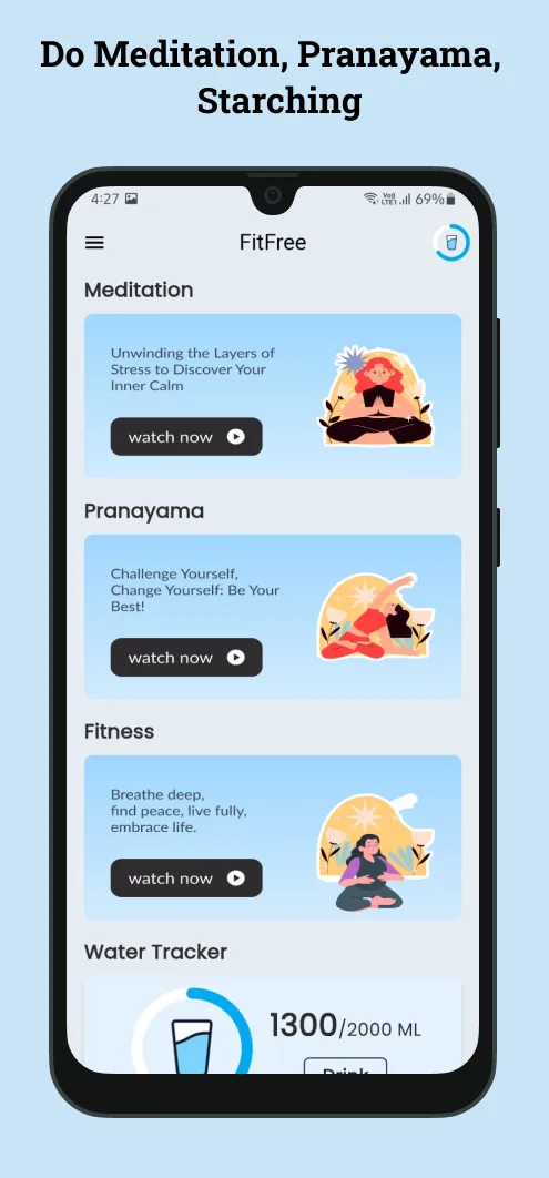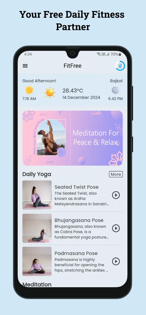 The all-in-one yoga and wellness app designed to elevate your mind, body, and spirit. Whether you're a beginner or an experienced yogi, Fit Free offers everything you need to cultivate a balanced and harmonious lifestyle. Feature - Free yoga, pranayama, fitness videos & meditation songs - Calculate your BMI - Daily water remainders...