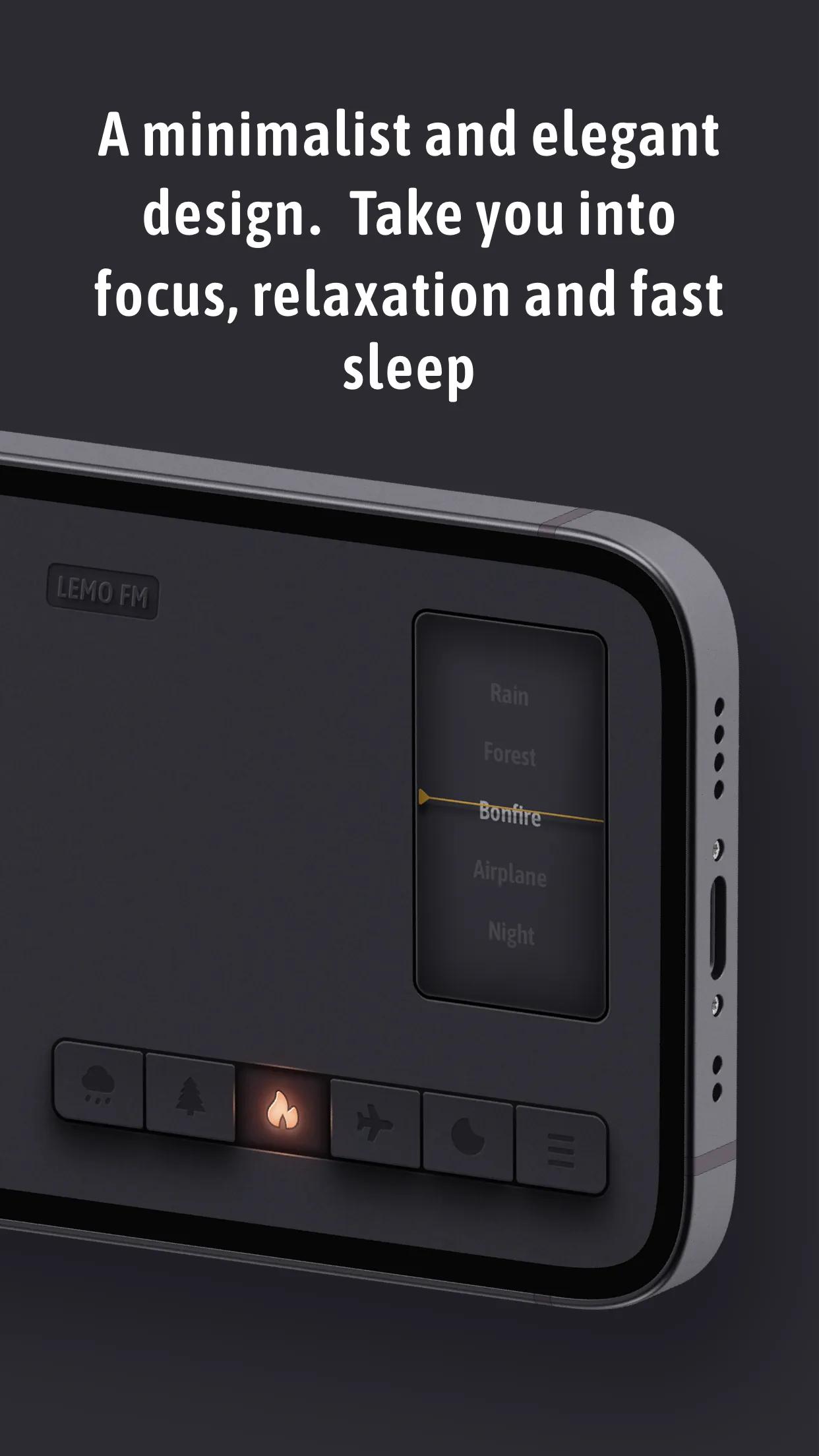 LEMO FM is a minimal, elegant white noise app that lets you focus, relax or fall asleep fast by playing high-definition nature sounds. Under the concept of "Less is more", we designed LEMO FM. Its interface is in the shape of a simple and beautiful radio. When you touch the button of the radio with your finger, the natural sound starts to play, and the breathing light also start to flash one breath at a time, these well-designed interactions allow you to start a journey of sound in the most ceremonial way. ##WHAT YOU CAN DO WITH LEMO FM: - Relax – calm your mind and enter a state of comfort, relaxation and security; - Focus – helps you focus longer and work efficiently...