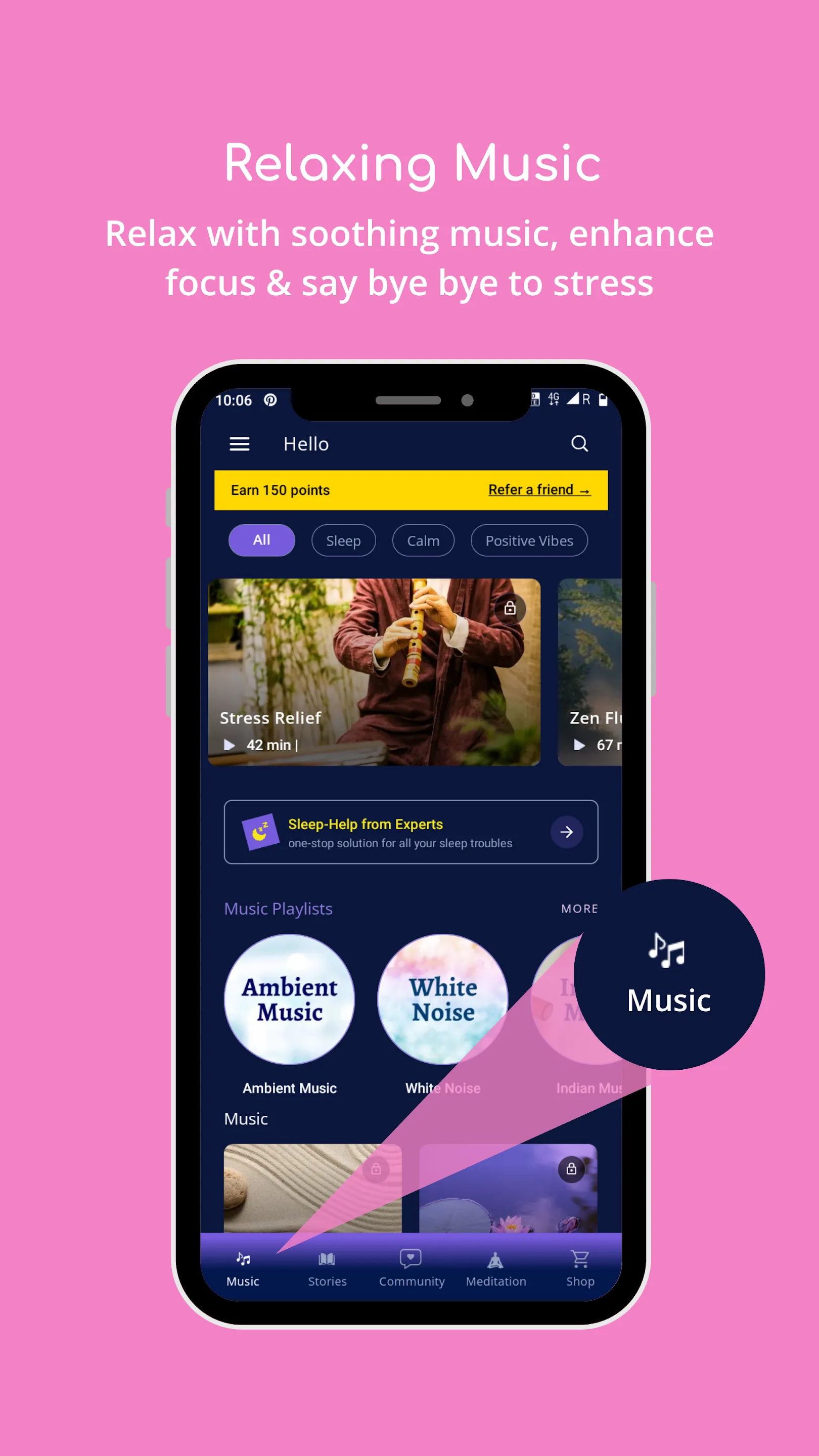 Neend App - Meditation, Bedtime stories, Sleep Music, Sleep products Do you find it difficult to fall asleep or have good quality of sleep? The Neend App is your guide to getting a great sleep experience. You can learn to find an inner balance, practice mindfulness, relax and discover a happier you who is more well-rested and fulfilled. The Neend App is India’s only free sleep app in your regional language (Hindi, English, Marathi, Tamil, and Telugu) for bedtime stories, relaxing sleep music, and meditation. The Neend App is for anyone who has difficulty in falling asleep, wants good quality sleep, or just wants to feel calm and more relaxed....
