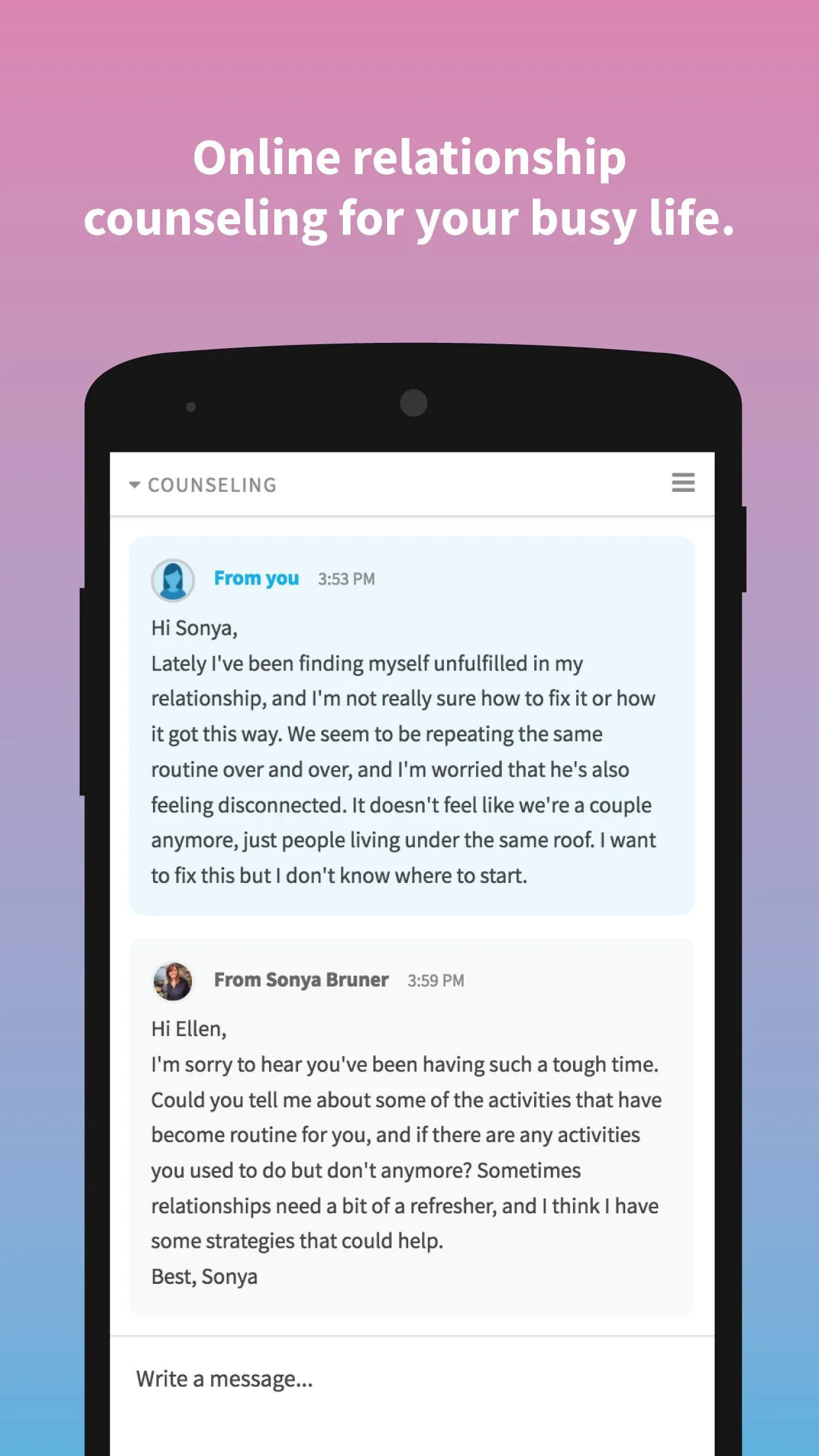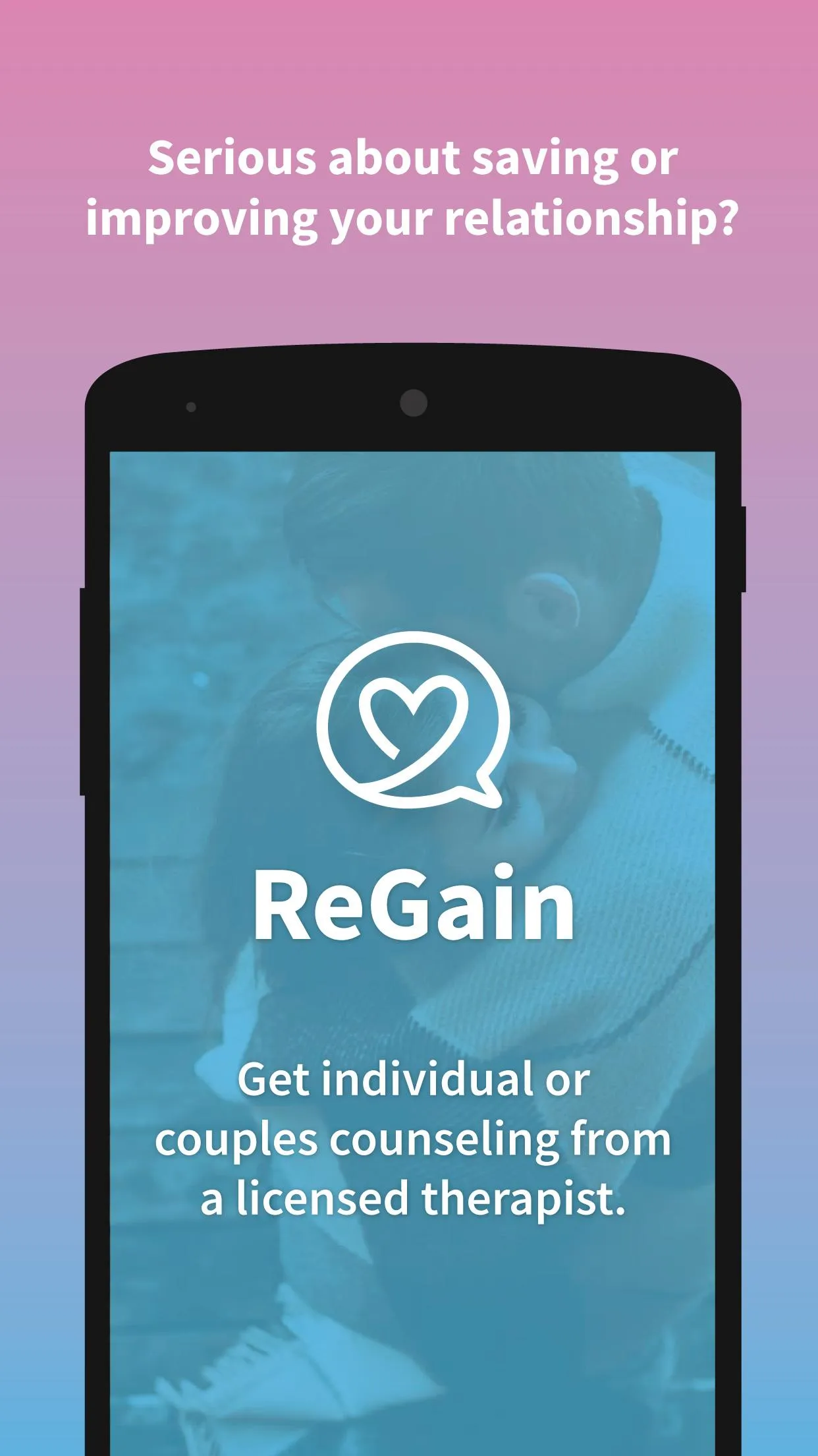 Get support for your relationship from a licensed therapist specializing in relationship therapy. Connect with a therapist on your own terms - individually or alongside your partner. ------------------------------------------- REGAIN – FEATURES ------------------------------------------- • Get therapy on your own or with your partner...