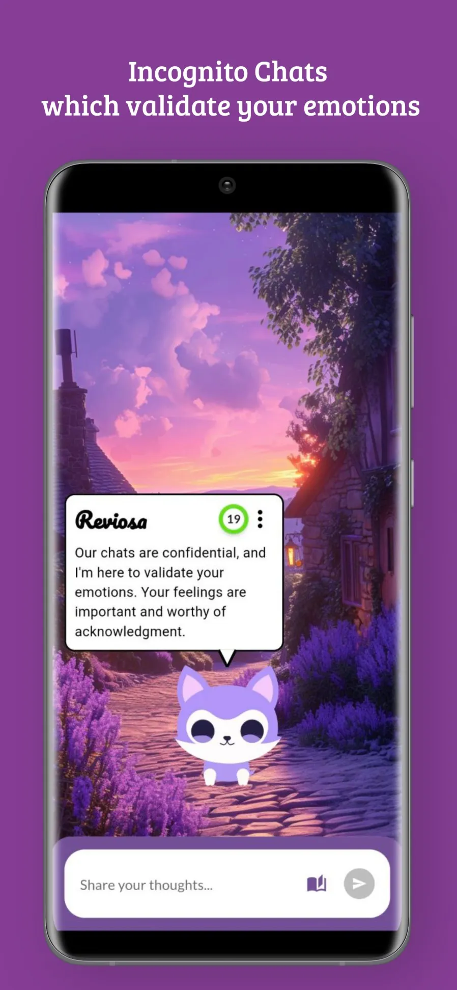 Discover a sanctuary for your inner struggles with our app, where Incognito comforting chats are just a tap away, anytime, anywhere. Powered by OpenAI's GPT technology, we've crafted a secure and supportive space for you to find solace and guidance on your unique journey. 🔒 Complete Anonymity: Your conversations remain exclusively on your device, ensuring your data's utmost security. Embrace open, honest chats with complete confidentiality. 🤝 Support, Anytime, Anywhere: Life's challenges don't adhere to a schedule. With our app, you have a reliable source of support at your fingertips 24/7. Find comfort and guidance whenever you need it most, empowering you on your path to well-being. ...