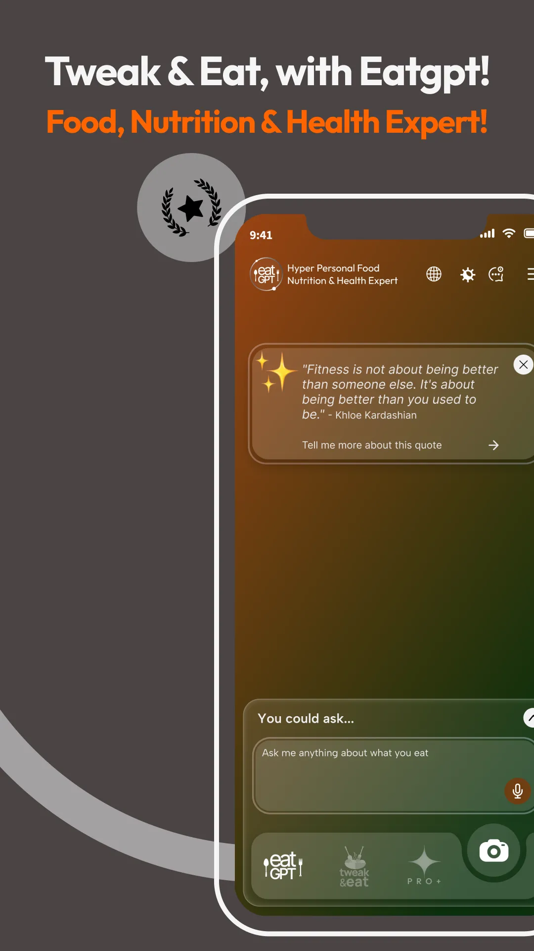 tweak & eat- with eatGPT! Hyper Personal Food, Nutrition & Health Expert! Who's your best friend? Somebody who tells you what's good for you. It's rare to find and lucky to have one. What if you found two? Say hello to tweak & eat with eatGPT! tweak & eat with eatGPT is the first ever generative Ai based personal nutrition app and the most efficient way to lose weight, manage chronic conditions and gain friends. eatGPT, The world's first hyper-personal food, nutrition and health GPT now powers the tweak & eat App and is now available for you to directly interact and learn anytime of the day. With improved UI to explore your nutrition and health guidance seamlessly with eatGPT....