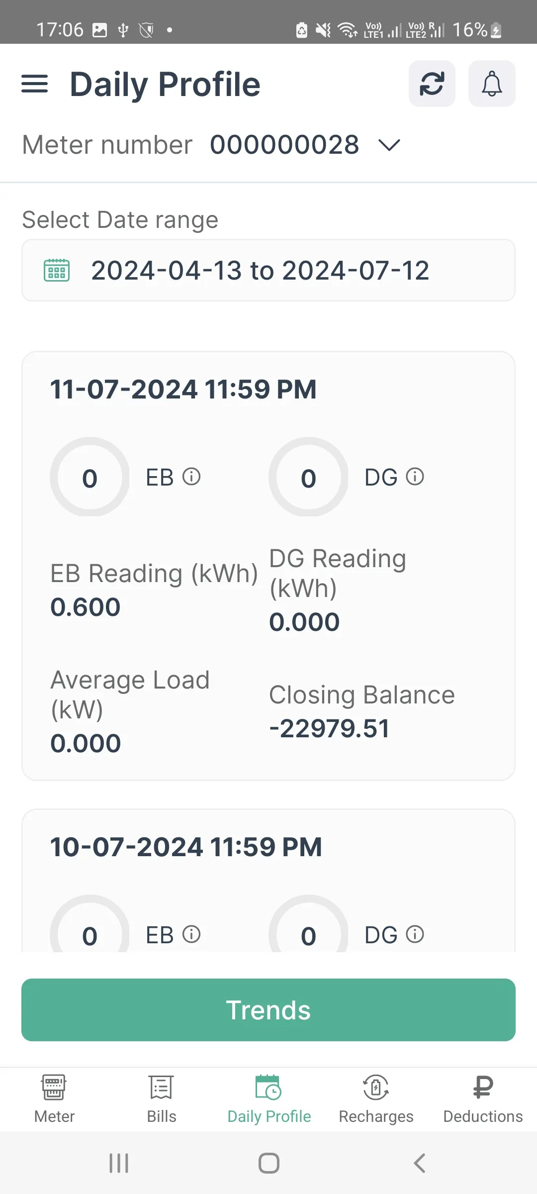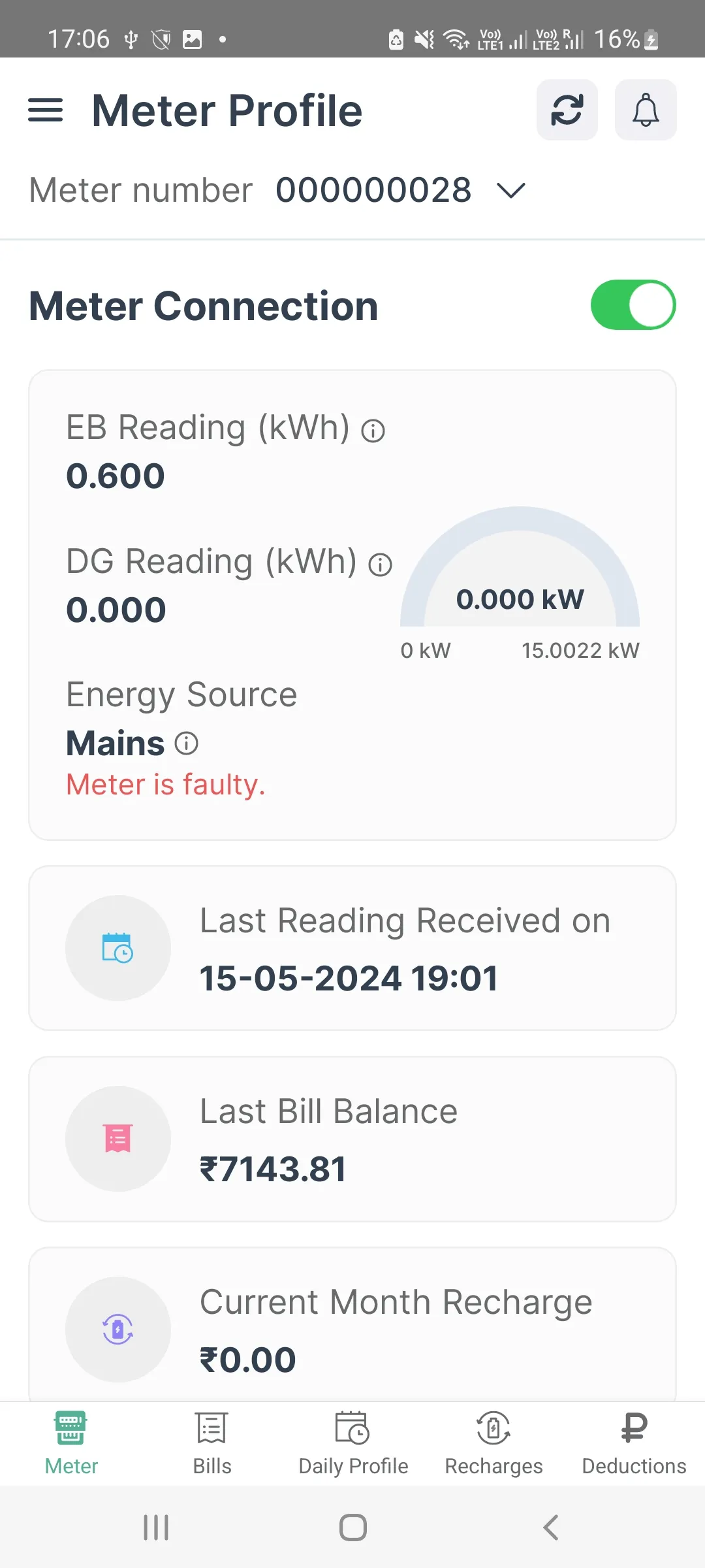 DOPN Kimbal Meters mobile app allows you to monitor your crystal meter load, view the live balance, view and download meter bills, monitor your daily consumption and get notified when an critical event occurs e.g Overload, low balance warnings etc. Contact your society admin if you don't have login/password or you can reset your password.