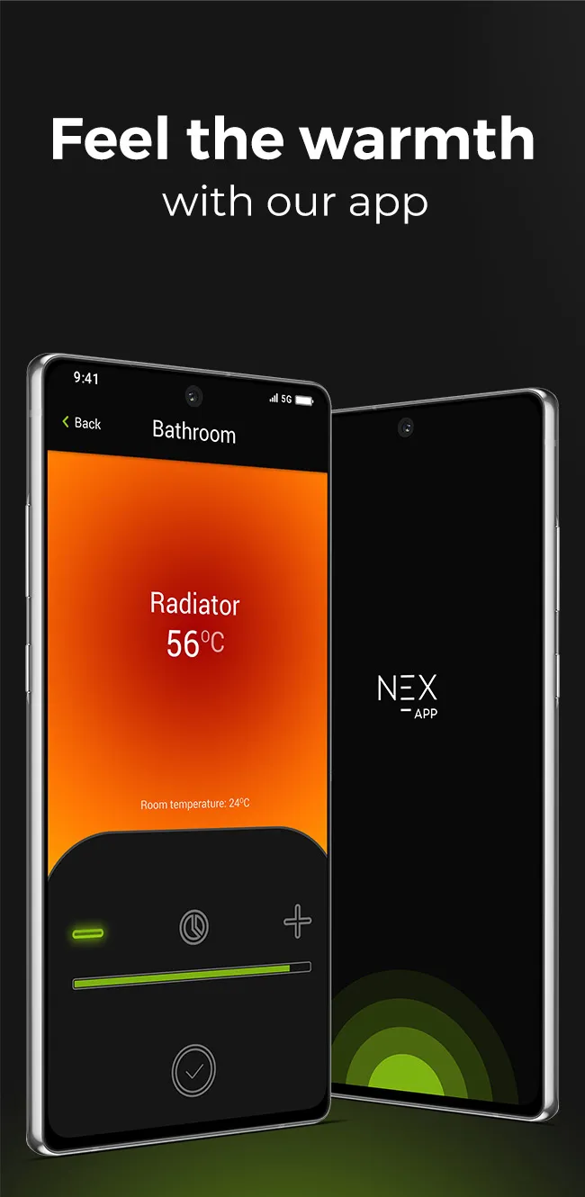 The new NEX system consists of local controller equipped with the radio communication, external sensors: temperature, open door/ window and mobile application NEX APP. Apply the solution, which ensure thermal comfort at home specially adapted to your needs. Towel rail equipped with the NEX heating element can be used as an electric dryer, local heater or as an additional source of heating in central heating radiators out of the heating season. Thanks to NEX APP application for mobile devices you can easily programme your heating devices. The benefits of using NEX system: ...