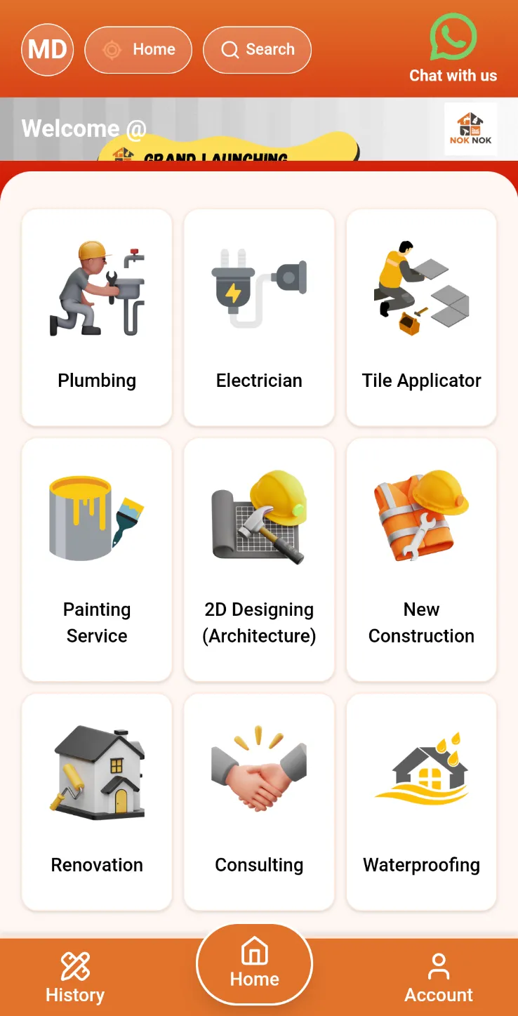 Be it a small plumbing leakage or an electric switch replacement to big tasks like water proofing, renovation, construction of extension floor, new construction, planning and/or designing services for new construction, NOK NOK has them all figured out and have teams ready to serve you!