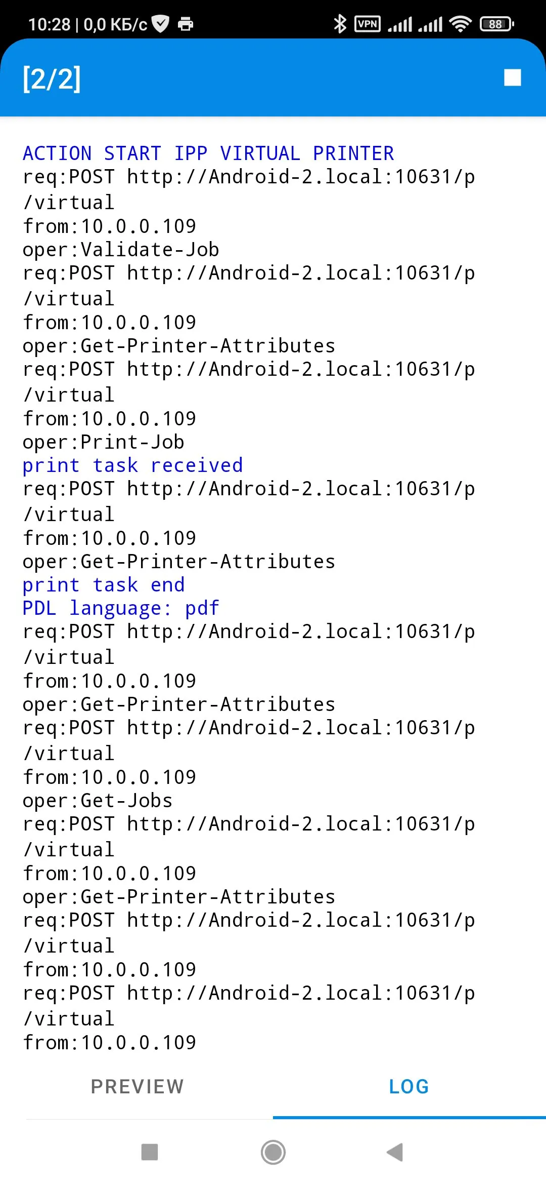 Save the trees. Do not waste paper when setting up printing plates. Your phone or tablet can now replace the printer when preparing printed reports. App emulated ipp printer. Anons it over mDNS as _ipp._tcp.local. Receives and responces on network request from other devices (e.g. PC). Also allowing use virtual printer from standart print service or apps working with printer directly. You may use this app for debug.