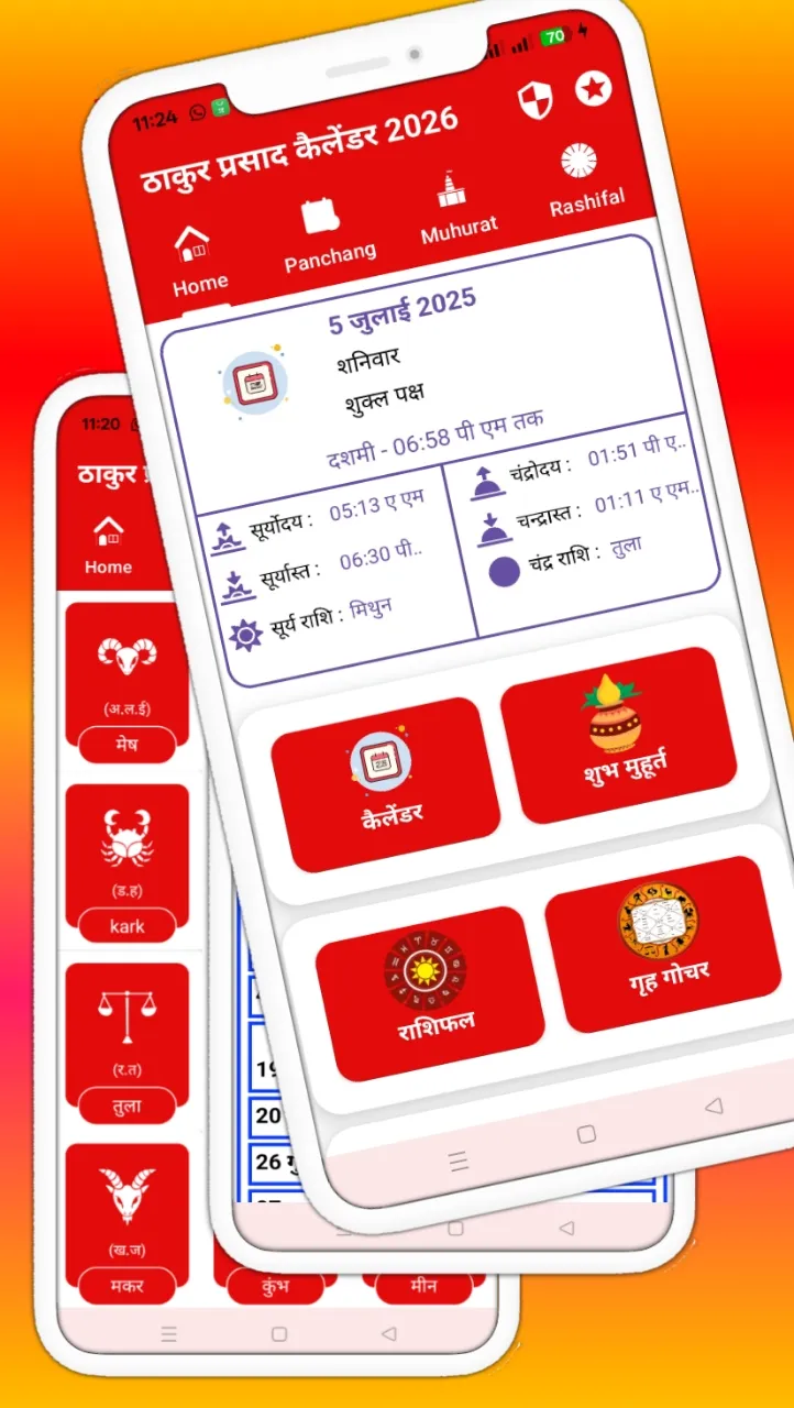 Thakur Prasad Calendar 2026 हिंदी पंचाग 2026 - ठाकुर प्रसाद कैलेंडर 2026 Thakur prasad ka calendar 2026 is a very easy and many features available.This apps also provide 2026 holiday calendar hindi. Using this apps you can check your Rashi fal ठाकुर प्रसाद कैलेंडर 2026 - हिंदी पंचांग कैलेंडर 2026 is native Panchang, which doesn't need Internet connectivity to use, comes with following features...