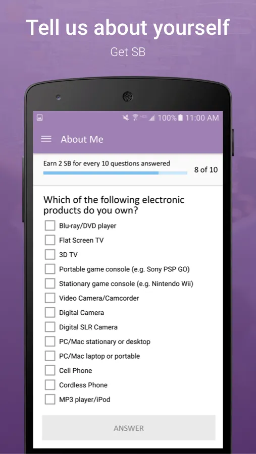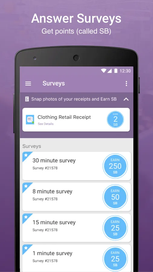 Earn FREE gift cards faster by taking surveys with the SB Answer app. SB Answer enables you to earn points called "SB" for answering surveys and for giving your feedback on local shopping visits. Over 18 million members have already redeemed their SB for over $150 million in free gift cards! The SB Answer app is the perfect way to extend your earning opportunities wherever you go. ...