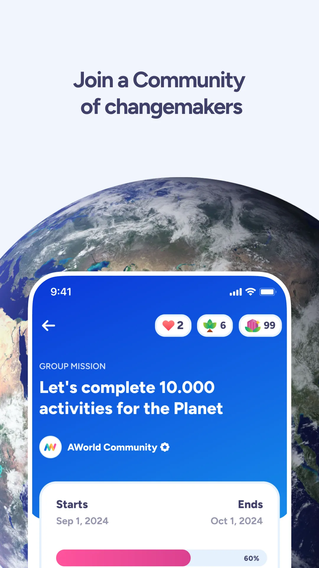 AWorld is way more than just an app. It’s the destination on your journey towards a sustainable future. We’ve designed a personalized experience just for you: from now on, living sustainably will be easier and more enjoyable! ...